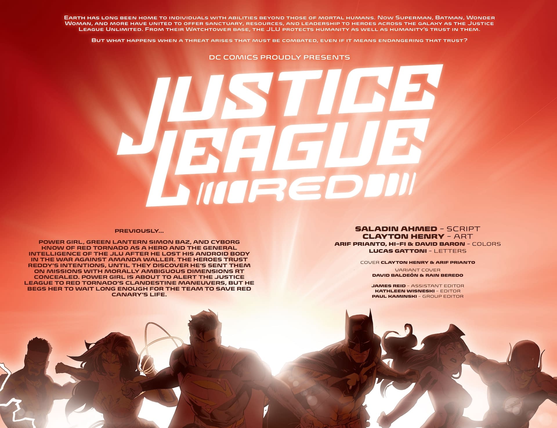 - Interior preview page from 0925DC0155 Justice League Red #4 Cover, by (W) Saladin Ahmed (A/CA) Clayton Henry, in stores Wednesday, November 19, 2025 from DC Comics
