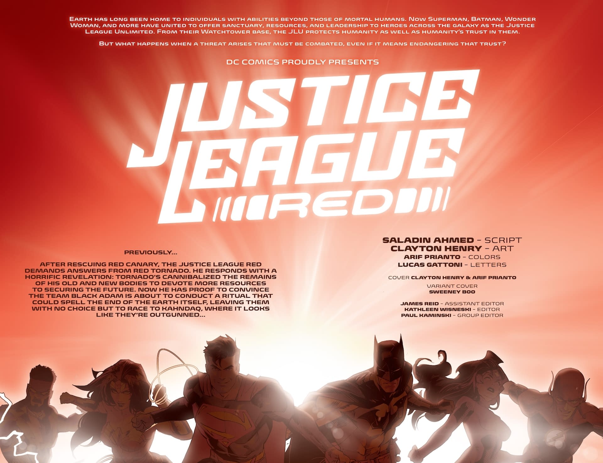 - Cover image for 1025DC0140 Justice League Red #5 Sweeney Boo Cover, by (W) Saladin Ahmed (A) Clayton Henry (CA) Sweeney Boo, in stores Wednesday, December 24, 2025 from DC Comics