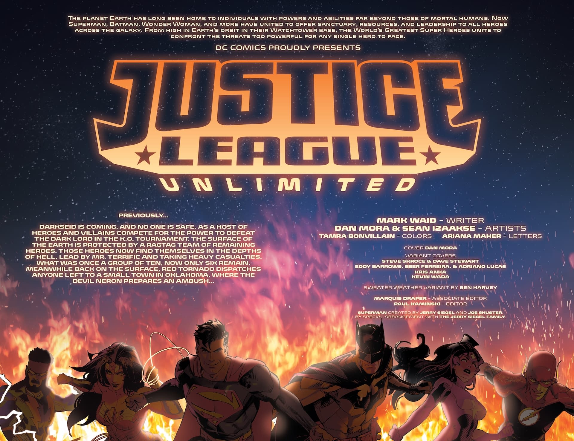 - Interior preview page from 1125DC0027 Justice League Unlimited #15 Cover, by (W) Mark Waid (A/CA) Dan Mora, in stores Wednesday, January 28, 2026 from DC Comics