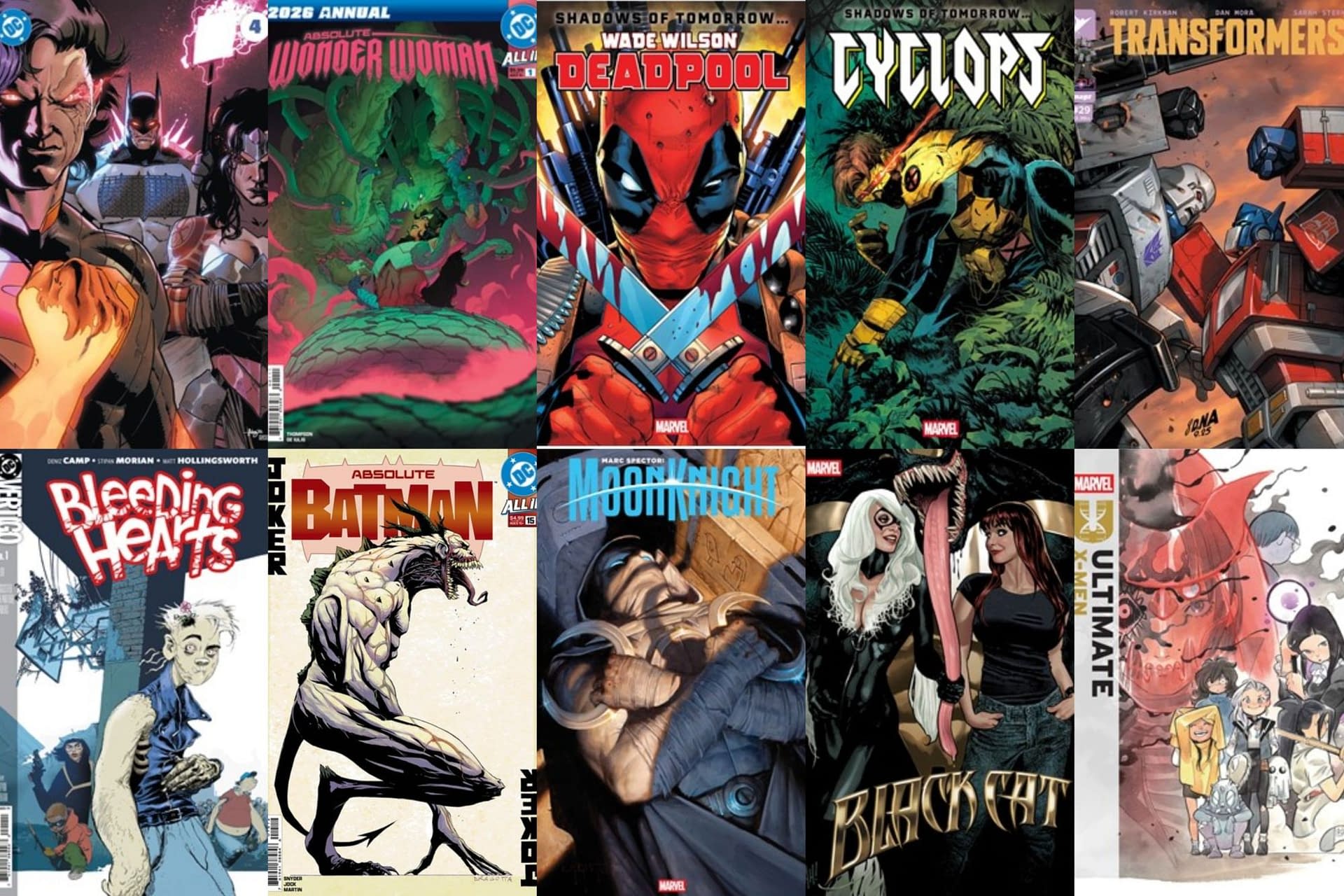 DC Comics takes the top with DC K.O. #4 fighting the Absolute character following the Absolute Wonder Woman Annual, which sells twice what the next books on the chart, Deadpool and Cyclops launches from Marvel, do. Bleeding Hearts is a strong Vertigo debut, just beaten by Transformers, but the surprise is the second print of Absolute Batman #15 making it into the top ten…