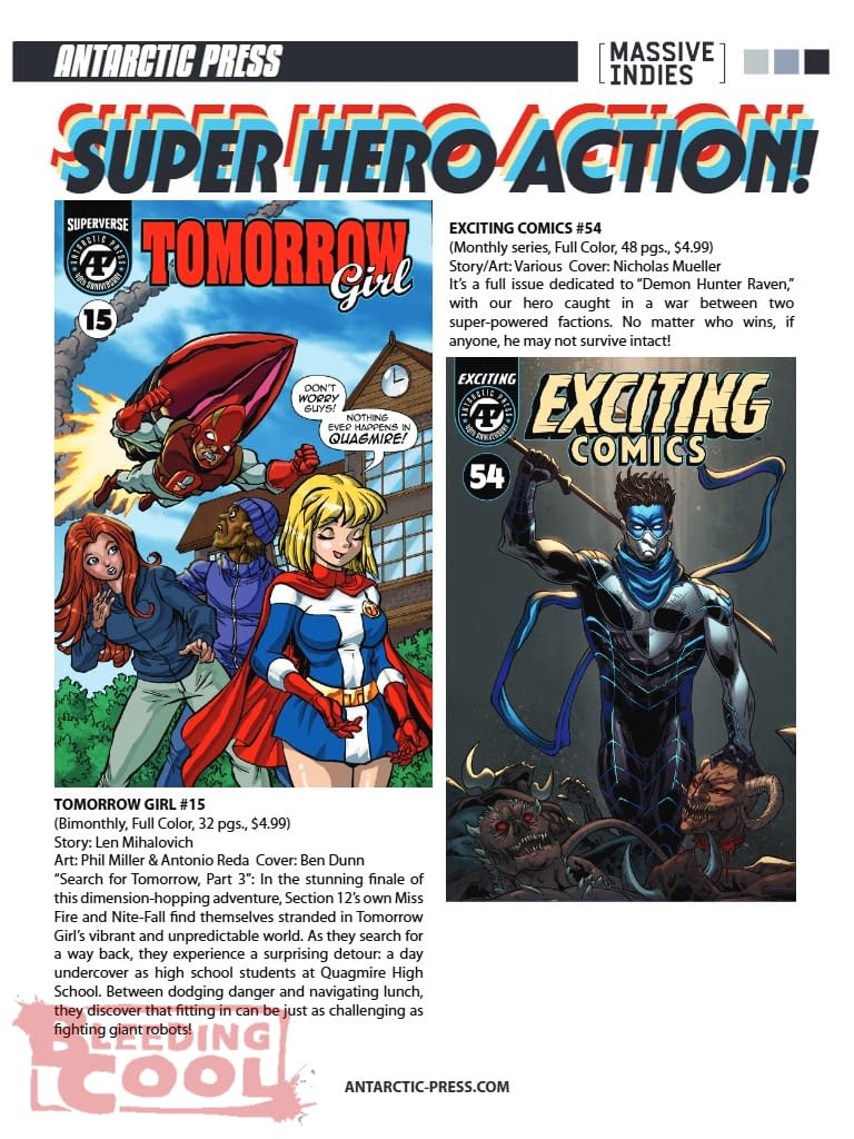 - Antarctic Press solicitations also highlight new issues of Tomorrow Girl, Exciting Comics, and Critter.