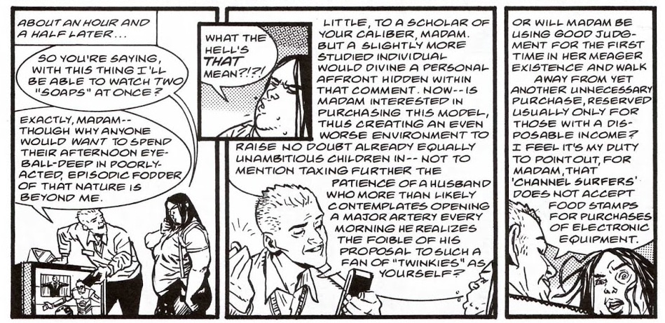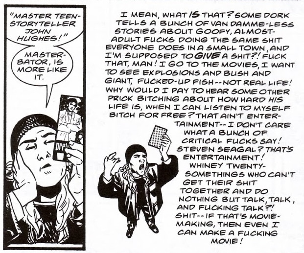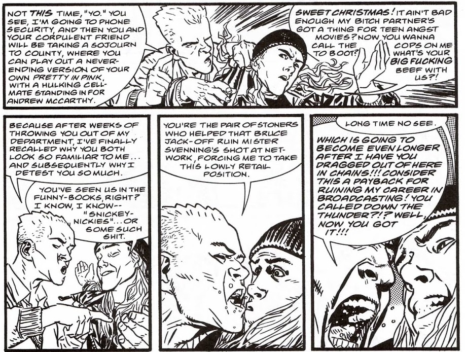 Alan Moore talks about restricting words in a comic book panel to 27. That's where Kevin Smith begins.