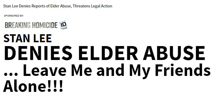 Contrary to TMZ's headline, which was widely copied by other news outlets, note that Stan Lee makes no denials regarding his physical state, nor does he address it at all. What he does say specifically is that there is a "one-man campaign" against… someone. Is it against himself, or another party? That is unclear.