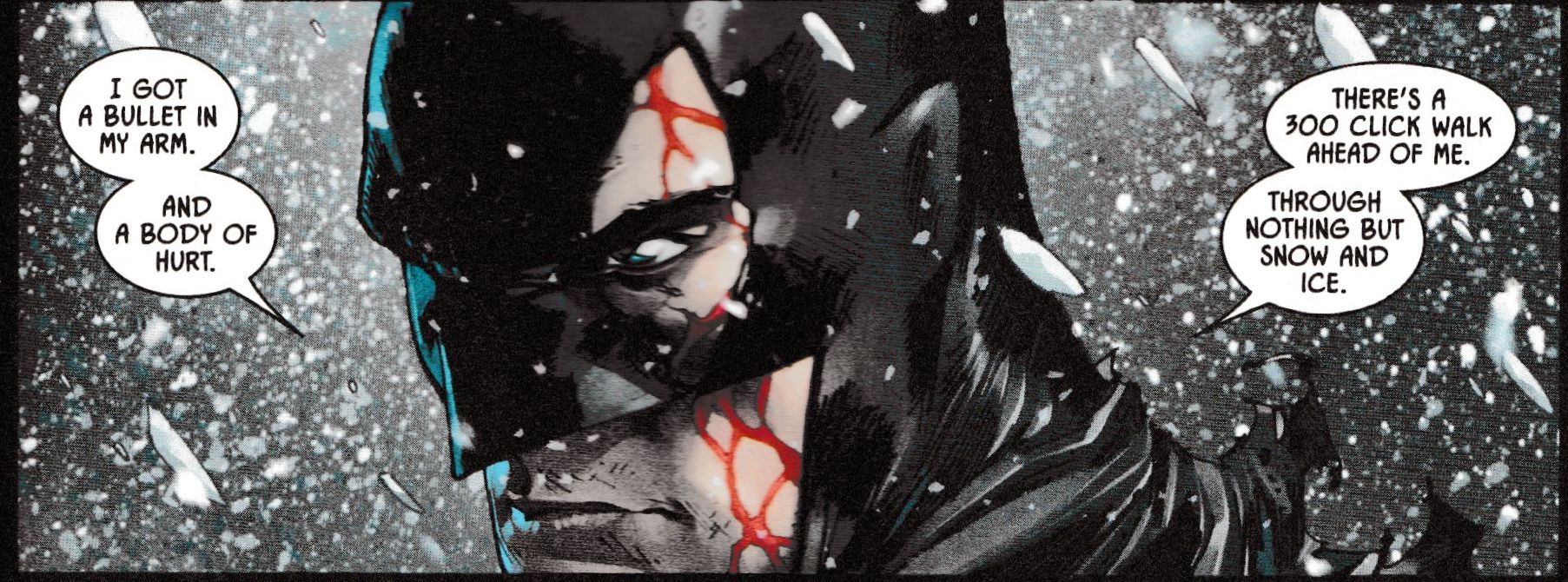 As well as the overuse of the word 'turd' – he has been rescued, broken neck and all… the KGBeast lives to shoot another Nightwing another day.