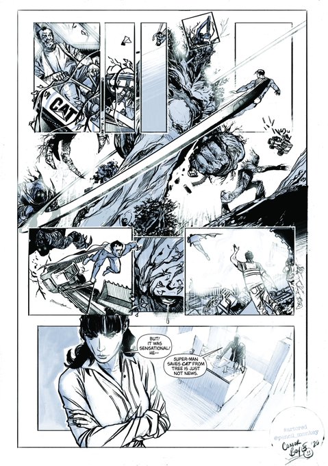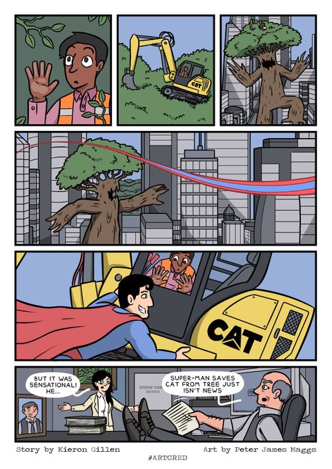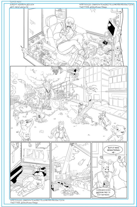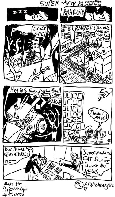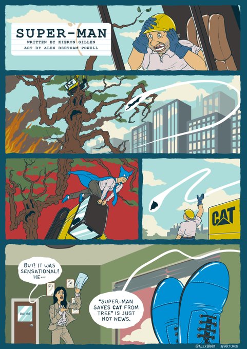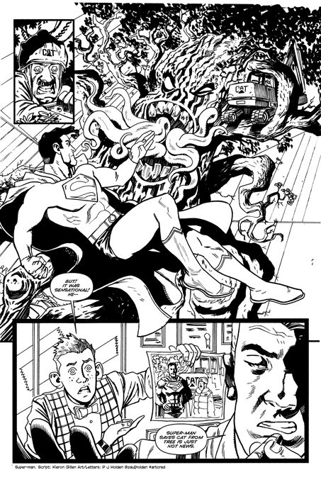 Tomorrow, Kieron Gillen will be holding a Guardian masterclass at Amnesty International's London HQ, talking about creating comic books. But you don't have to pay out so much money to get the benefit of his tutorship. Because last month, creators Kieron Gillen and Declan Shalvely had an idea. Something to demonstrate the importance and impact of comic book artists on a comic book page, faced with a media that often only praises the writer, rather than the penciller, inker and colourist. So they set up something called Project Art Cred, with scripts by Gillen from a non-existent Super-Man comic book.