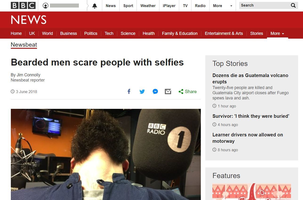 And who decided to take part in a challenge to show photos of men with beards looking up. And ended up on the BBC News pages for Newsbeat as a result.