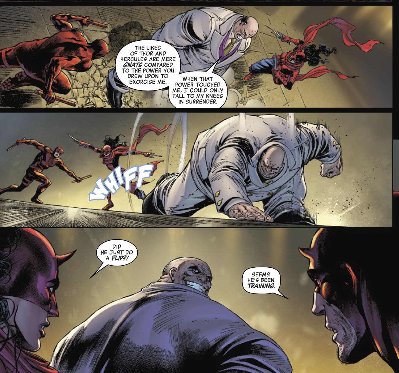 But it was the recent dealings with Daredevil, facing off against the personification of the Seven Deadly Sins, that seemed to have opened his eyes to new possibilities. Not just his eyes, but his knees as well.