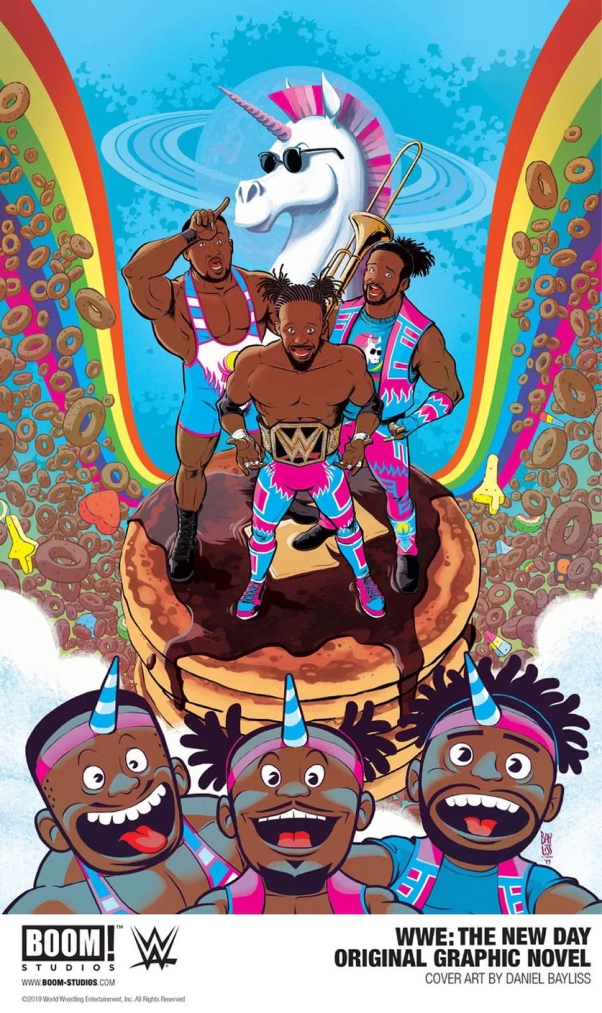 WWE Champion and New Day member Kofi Kingston arrived at BOOM!'s panel at San Diego Comic and dropped the bombshell news that The New Day are getting their own graphic novel in 2020. No news on who will be writing and drawing it, but we do have a cover by Daniel Bayliss…