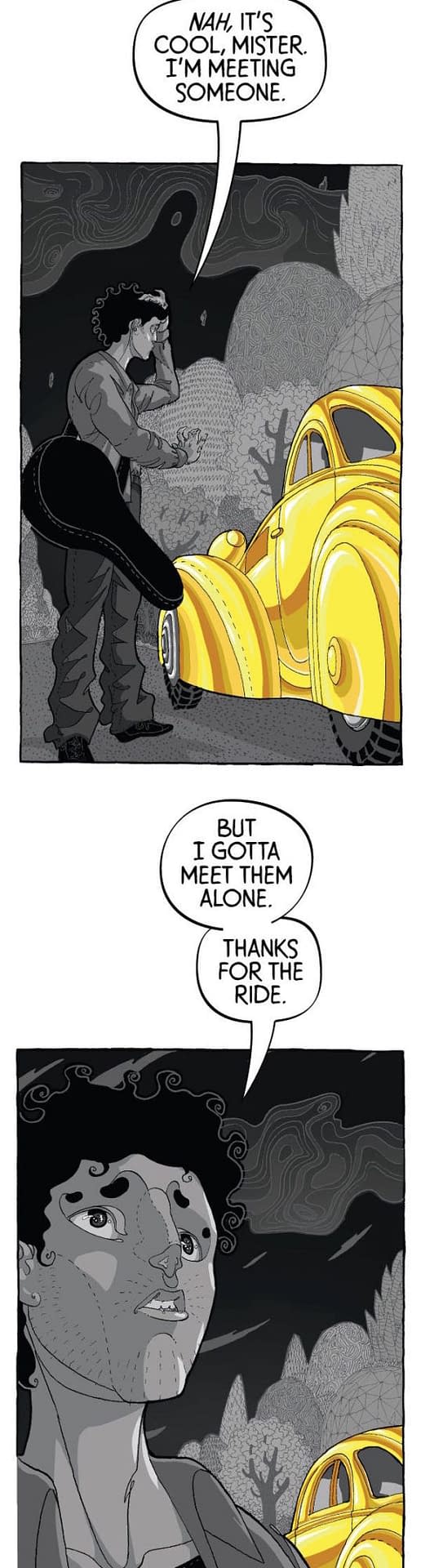 "We're going to be rolling out a new segment in the newsletter in the coming weeks that we're calling Black Market Presents. The idea is pretty simple— as this newsletter has continued to grow, I've wanted to find a way to bring more original material to everyone and a way to use it as a platform for more creators whose work we like. To that end, we're looking to start bringing subscribers original shorts from curated creators, designed specifically for the way that most people read emails and newsletters— on their phone. I started in comics in 2009, during a very different industry landscape and internet. It's not lost on me how much harder it's become for creators—especially newer creators—to get their work out there, build their names and gain a foothold. I don't know that this newsletter will pop anyone, but I feel like it's a cool thing that we can do and while it's early stages, the creators we've been talking to are all people I've had an eye on for a while and who I'm excited to see get more out there. As a little tease of what this will look like, here's the start of a new story by Rich Douek, Nir Levie and Buddy Beaudoin called Black Eye."