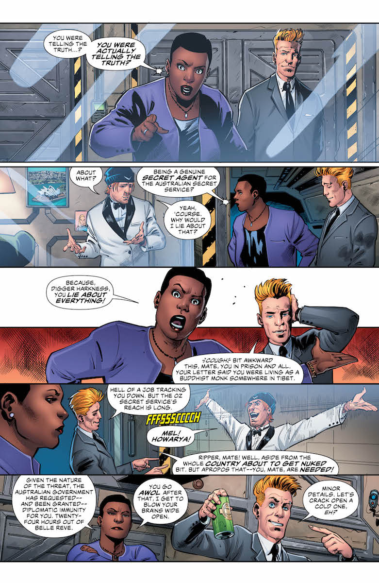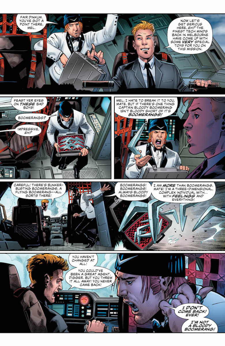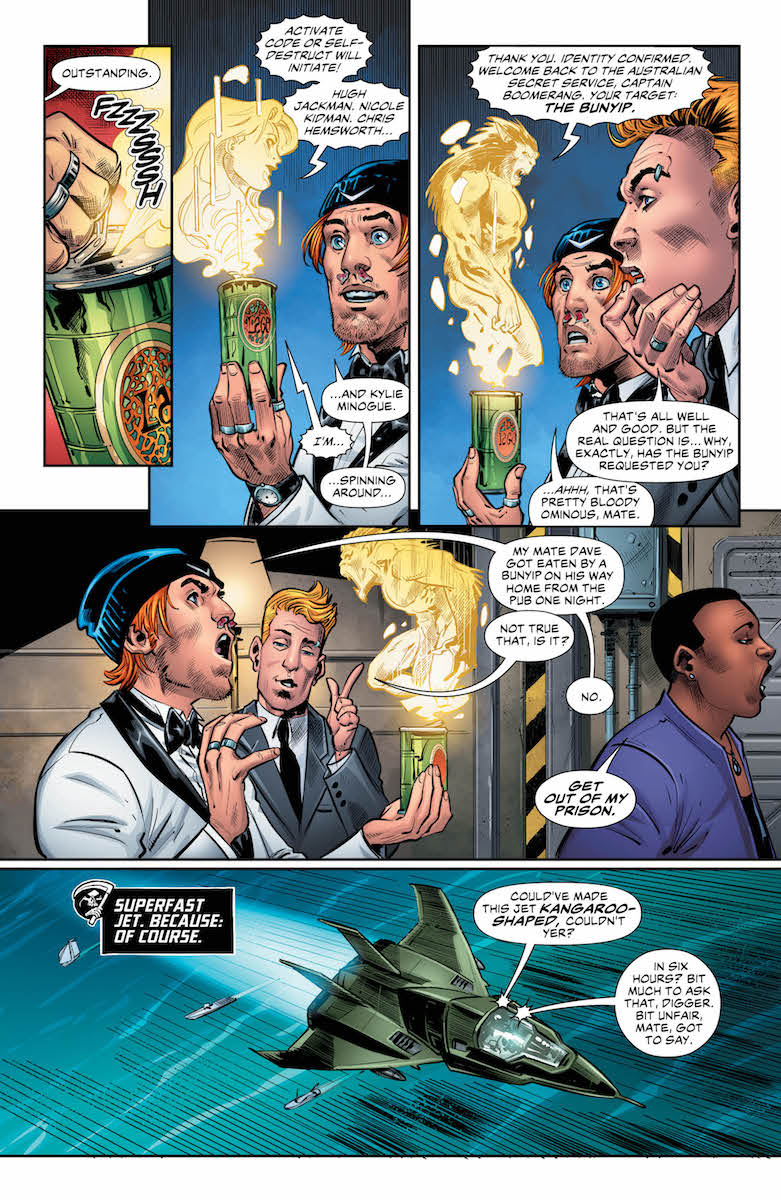 Rob Williams is the writer of DC's Suicide Squad comic. Bleeding Cool has reported that this won't be for too much longer as post Heroes In Crisis, Brian Azzarello will be writing a new Suicide Squad comic. Which basically means that he is walking wounded, he can write whatever he wants without worrying about consequences and that means in tomorrow's Suicide Squad, he can write a Captain Boomerang solo issue where the good Captain goes back to Australia, where he works with the Aussie secret services. And it probably couldn't be more Australian.