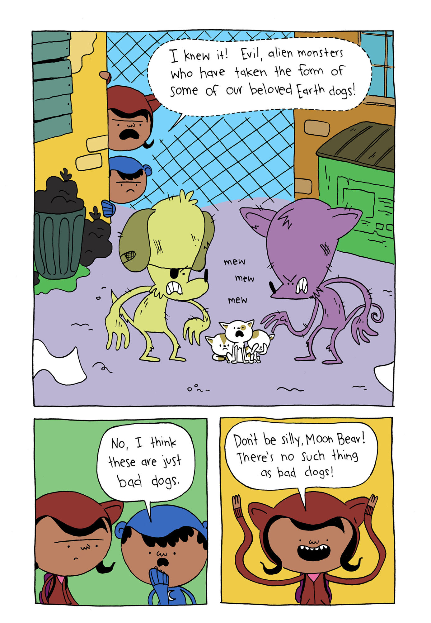 Red Panda and Moon Bear are the defenders of their community! Together, these brave siblings rescue lost cats, scold bullies, and solve mysteries, all before Mamá and Papá get home. But lately… the mysteries have been EXTRA mysterious. All of RP and MB's powers may not be enough to handle spooks, supervillains, alien invaders, and time warps! It'll take all their imagination — and some new friends — to uncover the secret cause behind all these events before the whole world goes crazy.