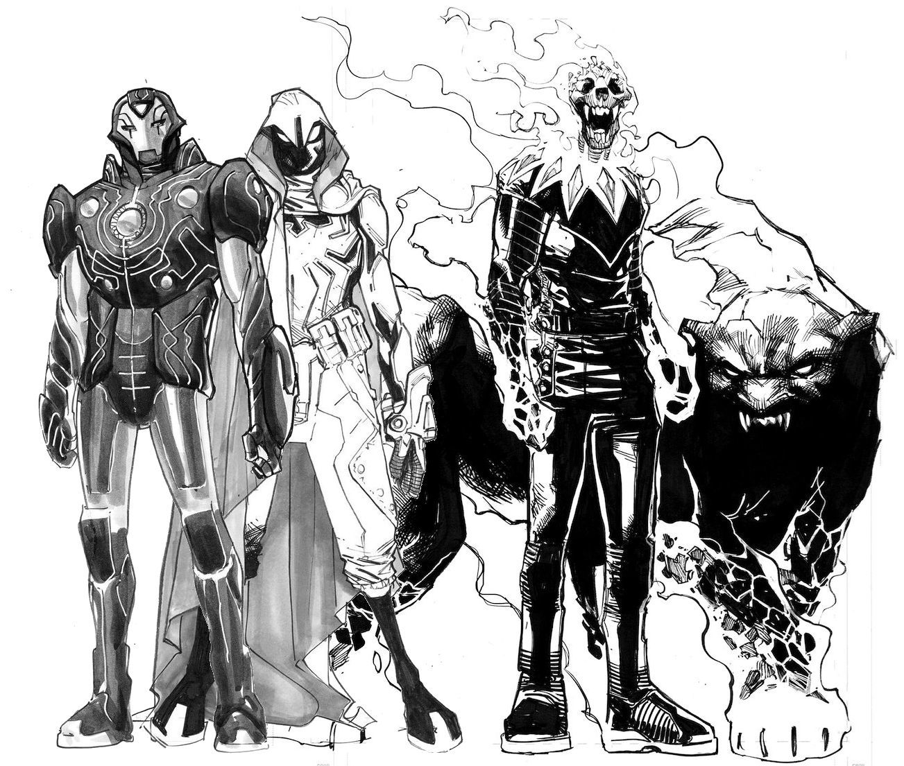 So Marvel Comics people have been tweeting out new designs by Humberto Ramos for some kind of mashup comic book series from him, in which Marvel characters get squished together.