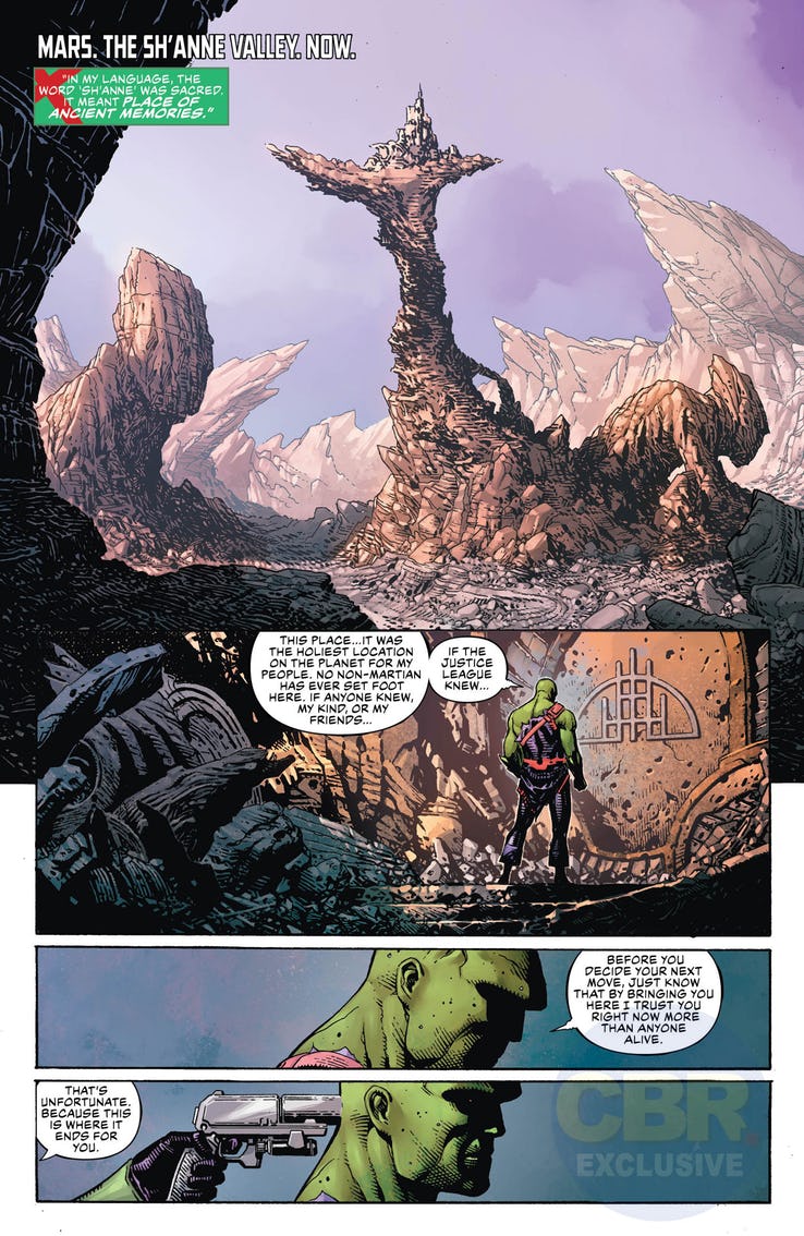 We're learning a lot about Martian Manhunter in recent issues of Justice League. Last issue, Justice League #16, showed us just how much J'onn has in common with Marvel Chairman Ike Perlmutter (both have had their DNA stolen), but perhaps the most unsavory connection he'll be forming happens in this week's Justice League #17. No, he's not also becoming friends with President Donald Trump… but's close! He's teaming up with Lex Luthor!