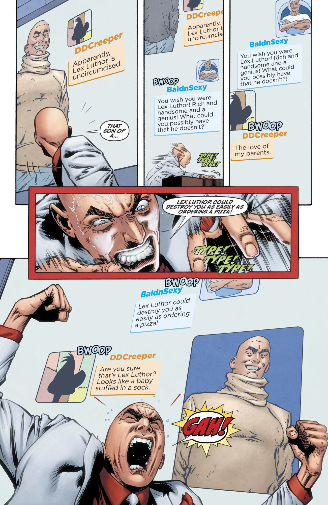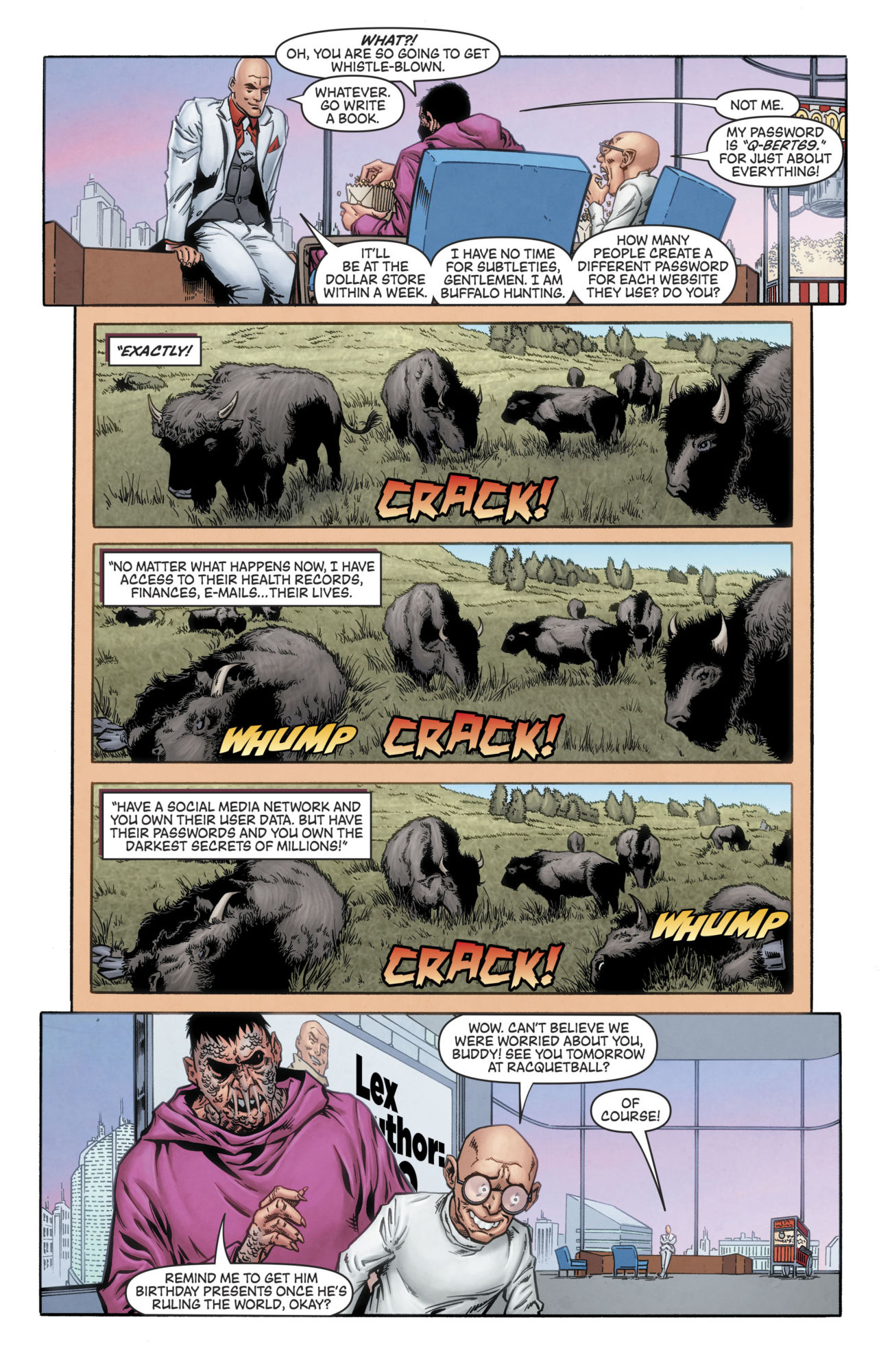 Today's Lex Luthor/Porky Pig Special sees Luthor hire Porky to look after his social media division. It's handy to create a little deniable distance between Luthor and what is going on with his company. Yes, this actually is a comic book being published today.