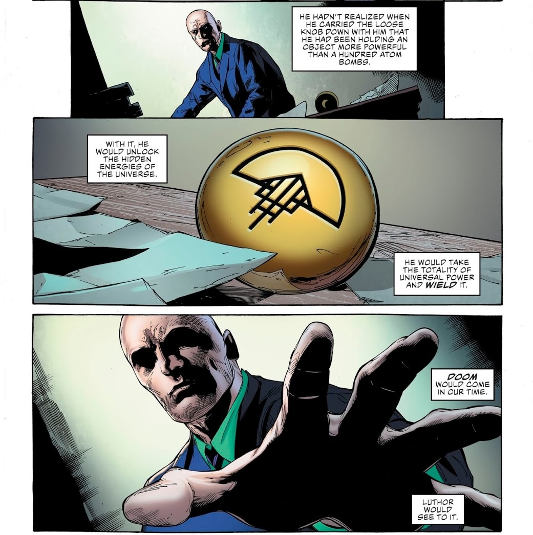 Lex has already seen another villainous future, with the knowledge that he could have brought that legacy of Doom even sooner – which is what he's trying to do.