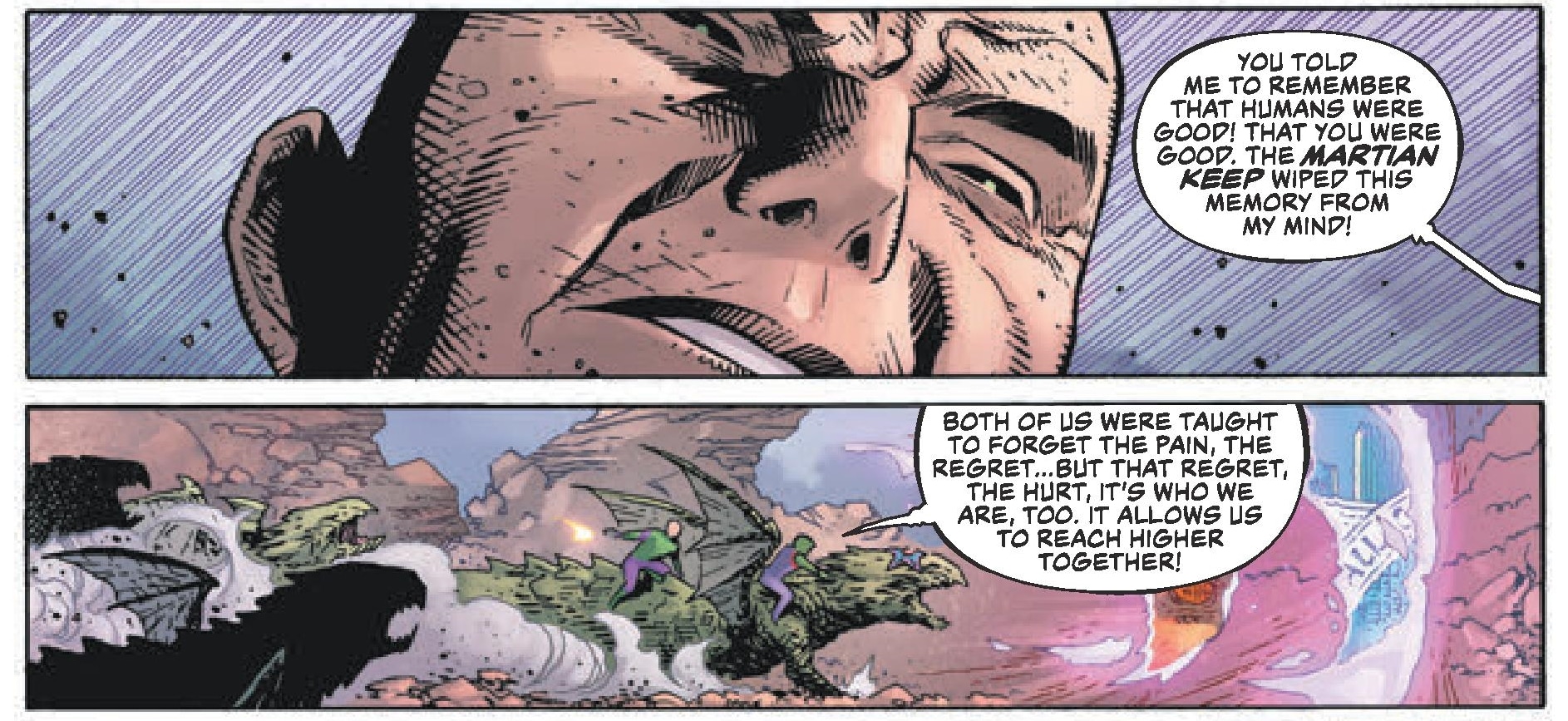 But will his very efforts defeat that? Will he end up being the hero he was when he was as a child, playing with J'onn J'onzz, and tried to be alongside Superman most recently? Will Martian Manhunter take Superboy's place in Lex's childhood? Because something is still coming which will need to be defeated… somehow.