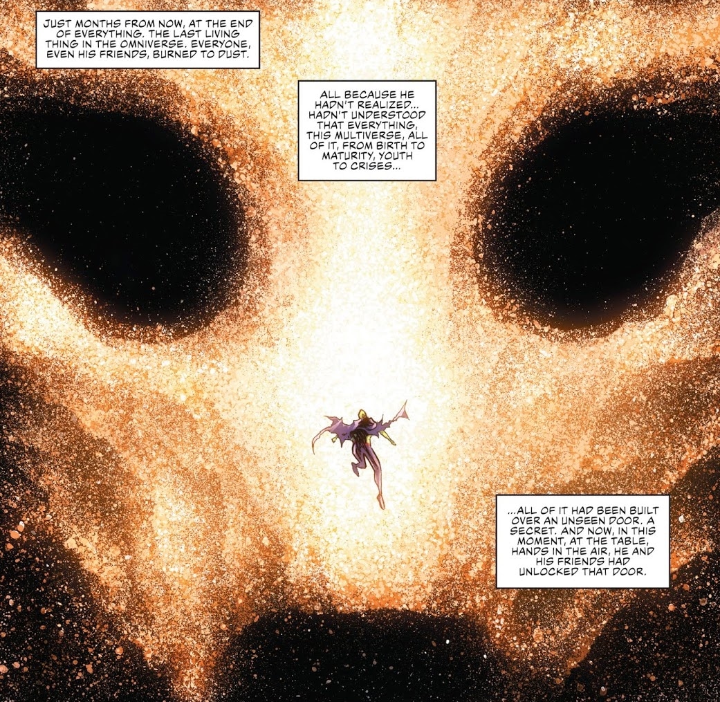 Scott Snyder has been doing a bit of a Jonathan Hickman, it seems. Back in the day when he was working for Marvel Comics, Hickman created storylines involving parallel universes in Secret Warriors and The Ultimates that he continued into Fantastic Four, where they dominated the plot. Leaving that book to write the Avengers and New Avengers series, he continued that storyline with the new characters, in and out of the Infinity crossover event, before culminating in the Avengers' storyline Time Runs Out, which brought the titles to an end and kicked off the massive Secret Wars event.
