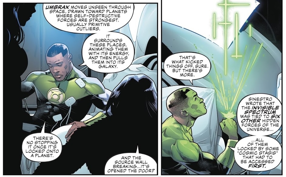 Today's Justice League #18 lays it all out. The Source Wall breaks. Causing it to spit a bit of the Totality back in time and space where it is found by Vandal Savage. Who over the centuries tries to find its worth. And hires Lionel Luthor to try and take its importance apart. Which he does. Which ends up handing the Totality to Luthor who uses it, in a scenario which ends up breaking the Source Wall.