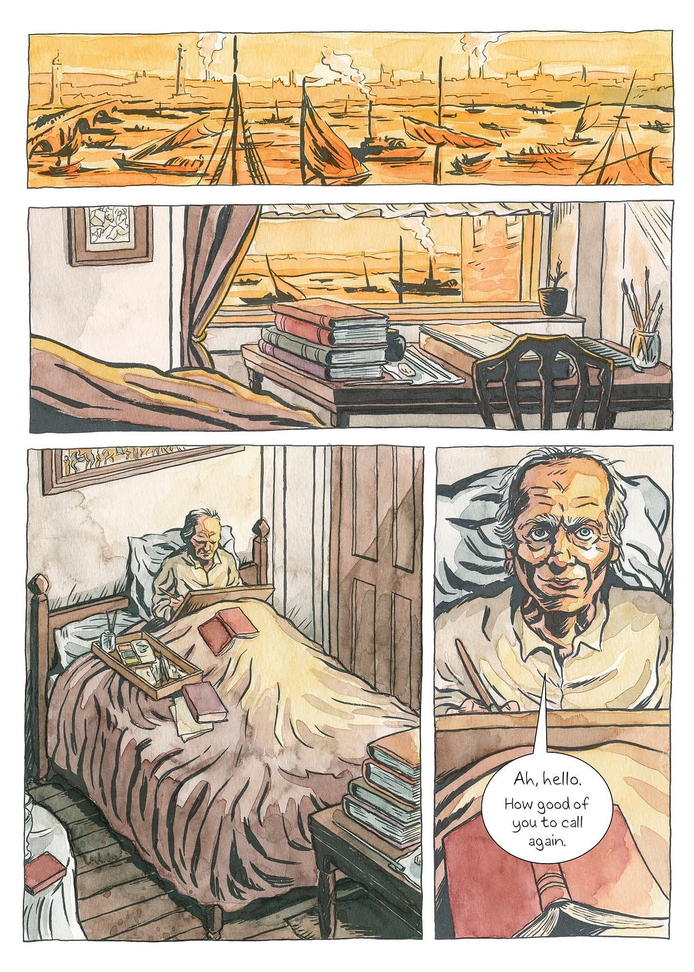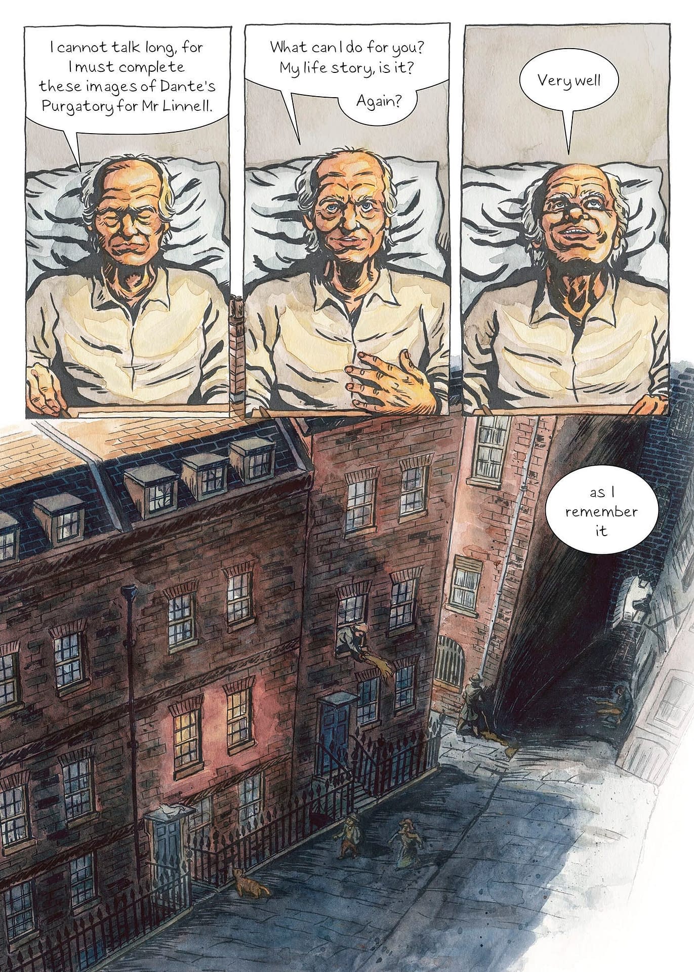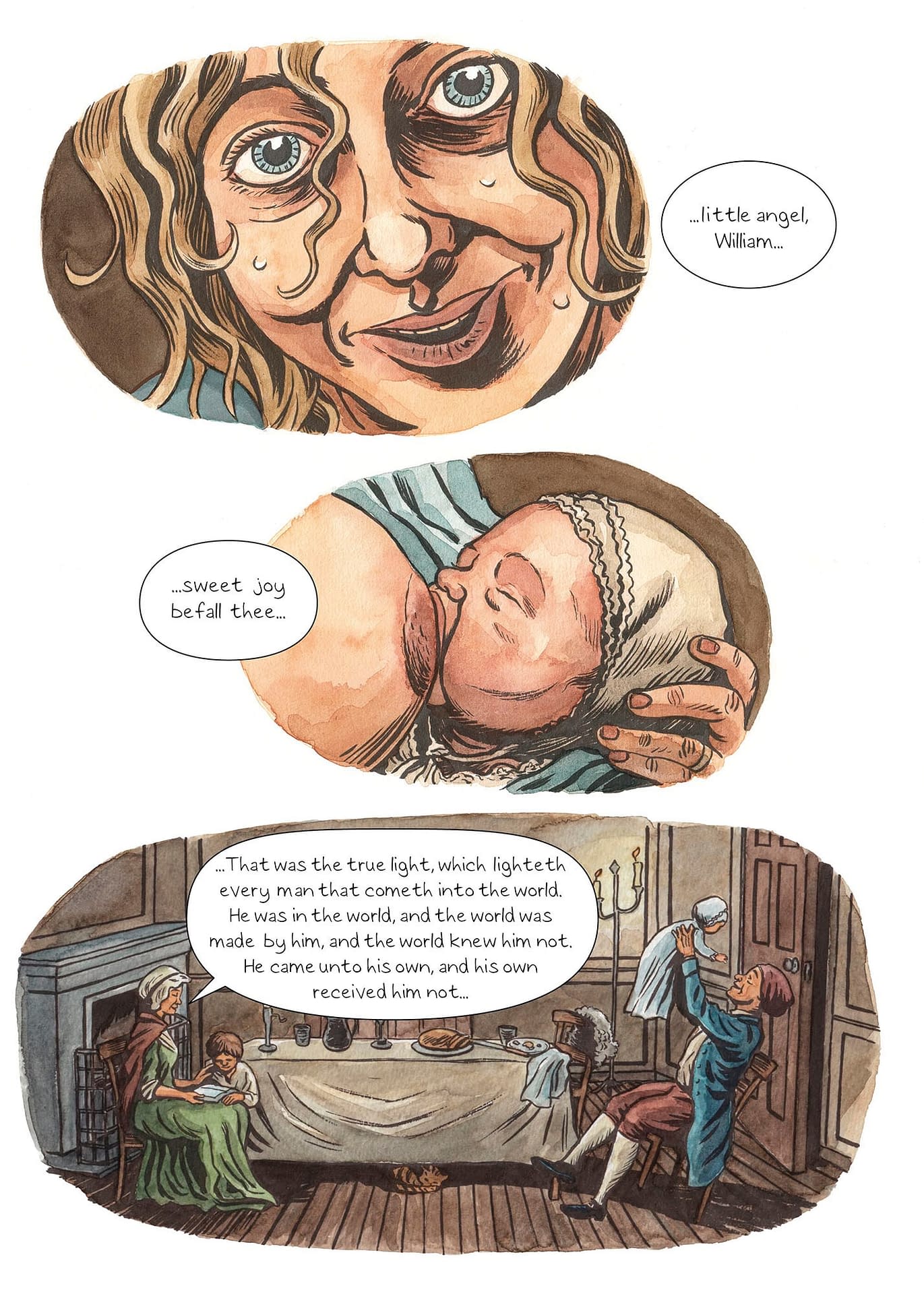"I want to do Blake justice then, more Wolf Hall than a whistle-stop guide. Obviously I'm going to do the visions (stay tuned for angels, 'God' at the window, psychedelic Old Testament prophets and more) but I also want to explore how the life and work of this visionary artist developed out of the tumultuous period and culture in which he lived, when politics, religion, literature, art and science were all turned upside down. This means spending more time with William, his family and friends, and in the unforgiving world of graphic novels/comics time means space, hence 300 pages!"