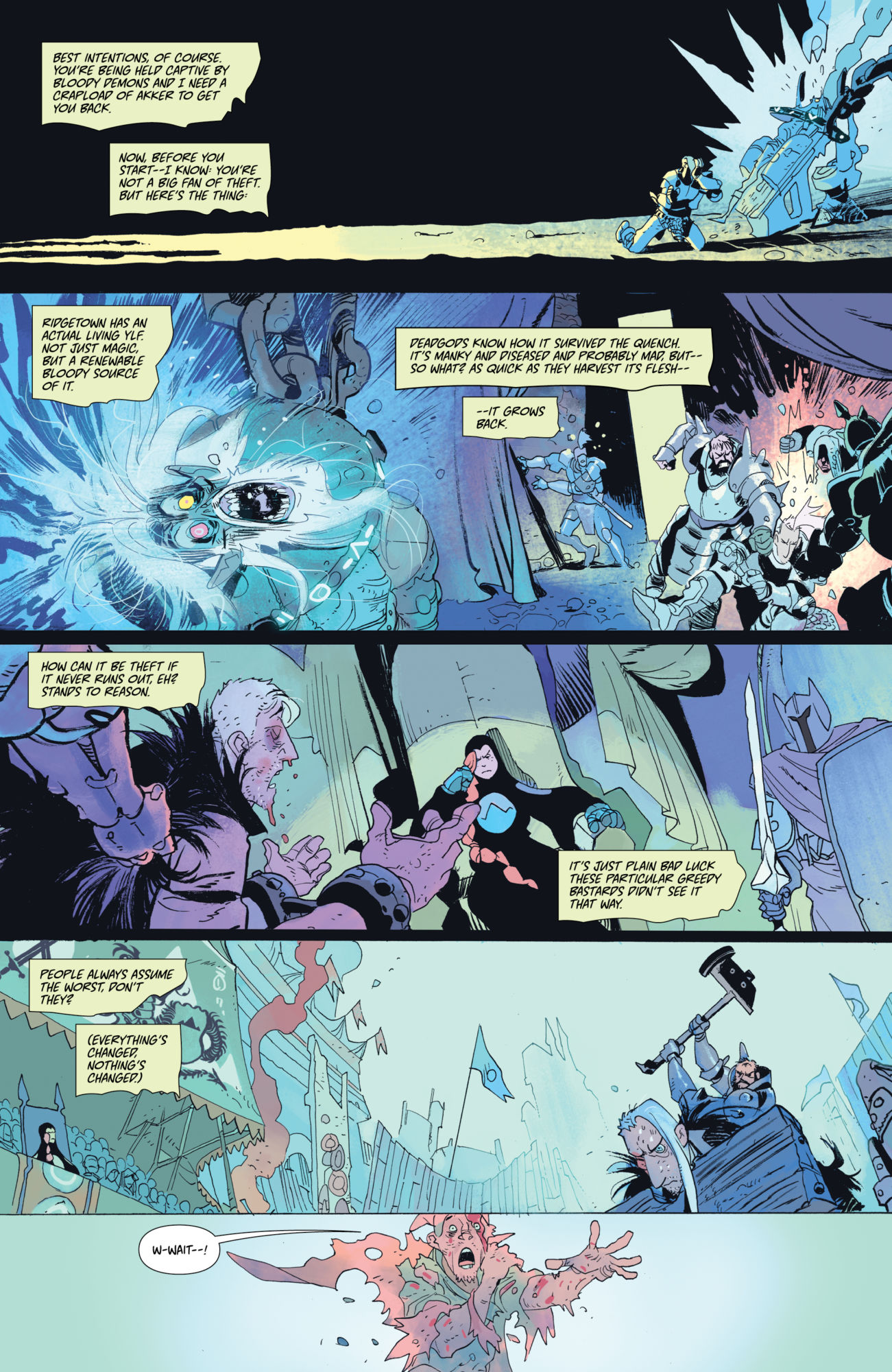 This all-new series, which sold out at a distributor level before the release of the first issue, reveals the aftermath of an apocalypse which wiped out nearly all magic from a once-wondrous fantasy world, in which an antisocial former bard named Hum seeks a way to save the soul of his wife with nothing but a foul-tempered mutant unicorn and his wits to protect him…but is unwillingly drawn into a brutal power struggle which will decide forever who rules the weird wasteland.