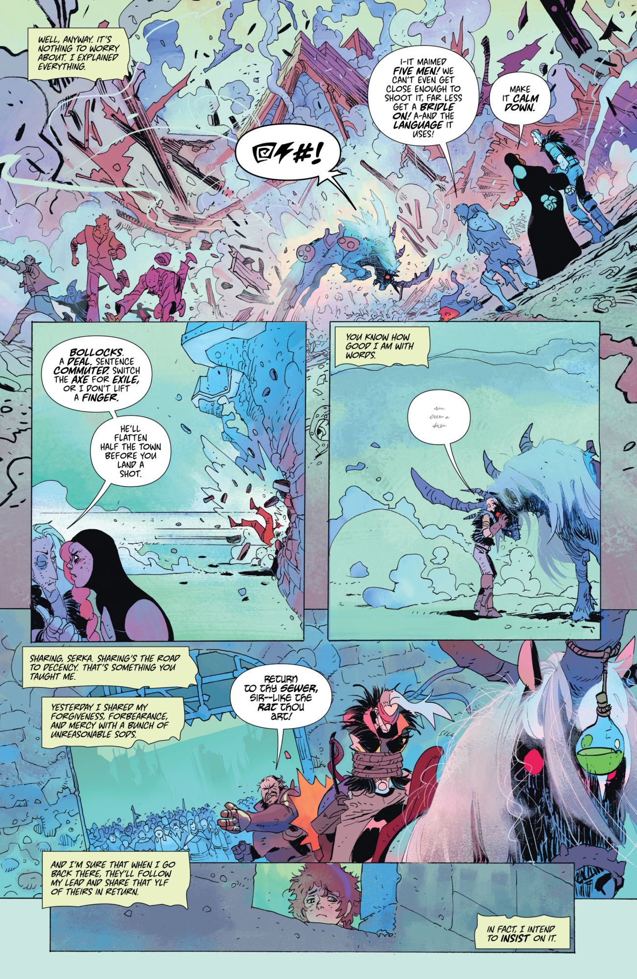 In CODA #2, featuring a main cover by Bergara, along with variant covers by Lee Garbett (Skyward) and Chris Wildgoose (Batgirl), a dangerous person from Hum's past has returned. Now he's bound, blindfolded and sent into exile on the back of Nag, his loyal Pentacorn. Things don't seem like they can get worse for Hum…until they get much worse.