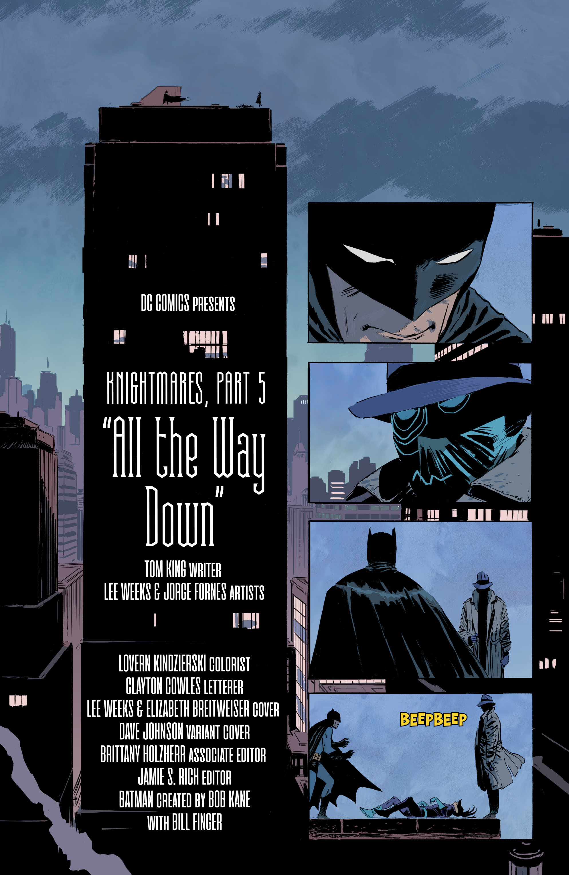 The "Knightmares" continue as Batman chases a new foe in an impossible race. Over rooftops, across alleyways, up and down the streets of Gotham City, this lightning-fast crook outsmarts the Dark Knight at every turn. Is that because the man under the mask is someone more familiar than he knows? Artist Lee Weeks returns to BATMAN for an all-out action issue unlike any you've seen before. In Shops: Mar 20, 2019 SRP: $3.99