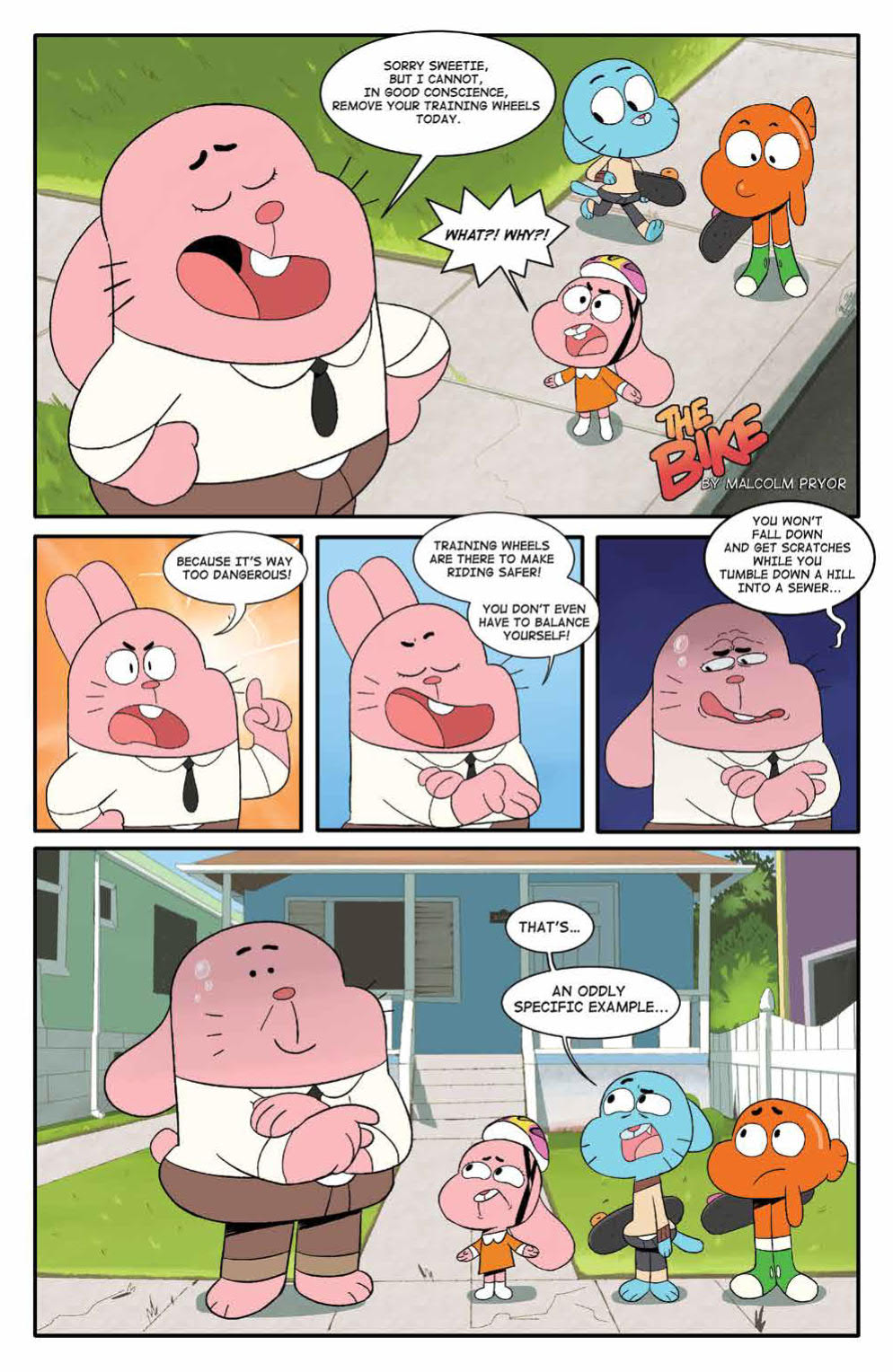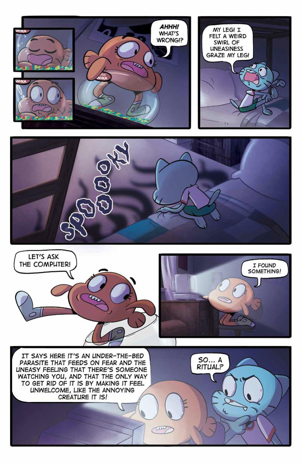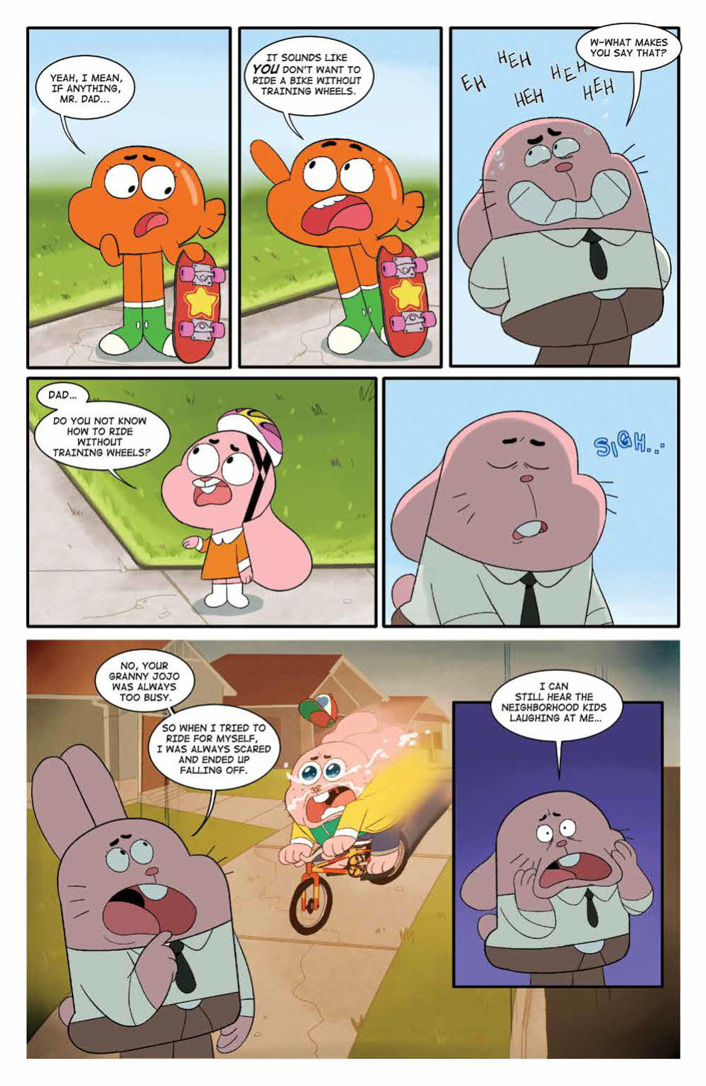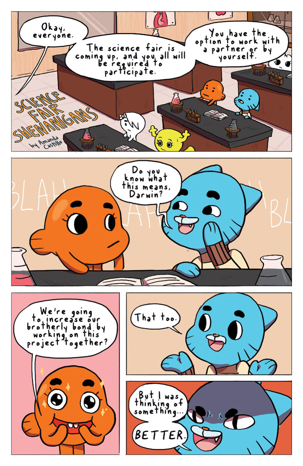 Synopsis: Elmore, beware, as Gumball, Darwin, and Anais tackle their greatest fears: riding a bike, monsters under the bed, and more! Featuring stories and art from talent such as Kelly Bastow (Capture Creatures), Julieta Colas (Rick & Morty), and more, this brand-new Grab Bag collects hilarious shorts from The Amazing World of Gumball.