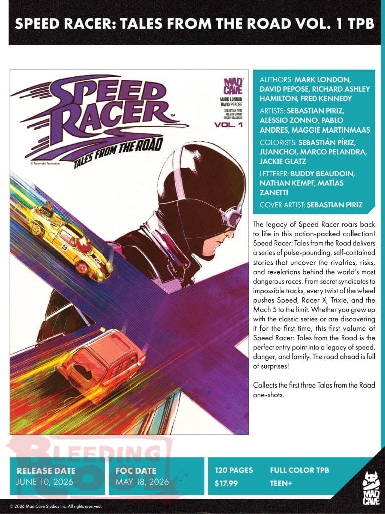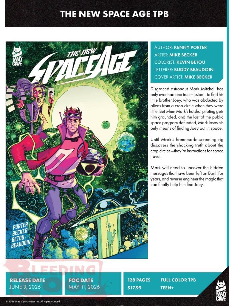 Mad Cave Studios' June 2026 solicits and solicitations include the launches of Junk Punch #1 by Paul Tobin, Carlos Javier Olivares, Land Of Never #1 by Steve Orlando and Miguel Mora, Blüdwire #1 by Paul Allor and Ermitis Blanco, and The Phantom Vs The Red Dragons one-shot by Ray Fawkes and Lynne Yoshii… as well as the usual Gatchaman, Dick Tracy, Flash Gordon, Speed Racer, War Wolf, Dog Tag, Exit City, Honor And Curse, Terrorbytes, Barbarian Behind Bars, Exploit, Pretty Hate Machine, Planet Atmos, Racer X, and certain comics that have got all sorts of people excited, 51 and Is Ted OK? as well as a republication of Marvel's The Last Starfighter movie adaptation by Bill Mantlo, Bret Blevins and Tony Salmons……