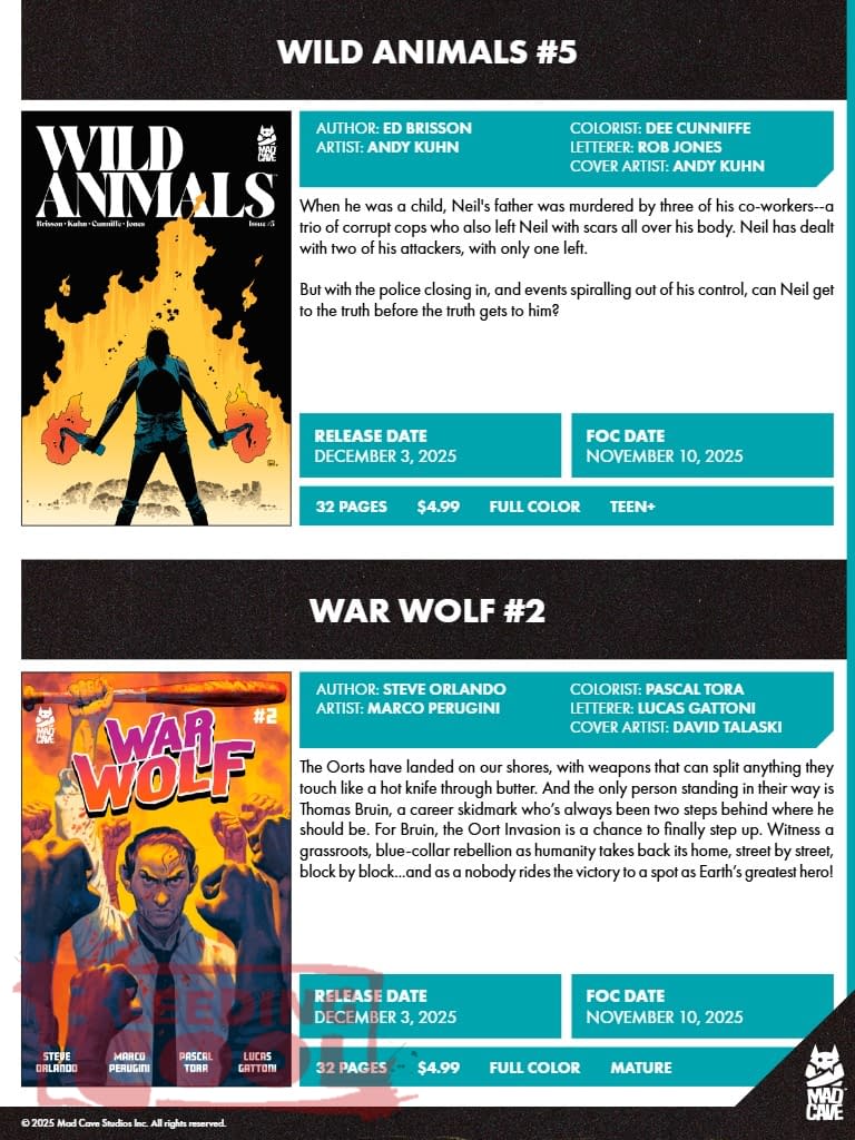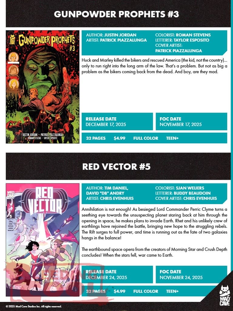 Mad Cave Studios' December 2025 Full Solicits, Dan DiDio On Defenders
