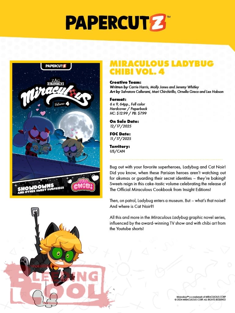 Bug out with your favorite superheroes, Ladybug and Cat Noir! Did you know, when these Parisian heroes aren't watching out for akumas or guarding their secret identities – they're baking? Sweets reign in this cake-tastic volume celebrating the release of The Official Miraculous Cookbook from Insight Editions! Then, on patrol, Ladybug enters a museum. But – what's that noise? And where is Cat Noir?! All this and more in the Miraculous Ladybug graphic novel series, influenced by the award-winning TV show and with chibi art from the Youtube shorts!