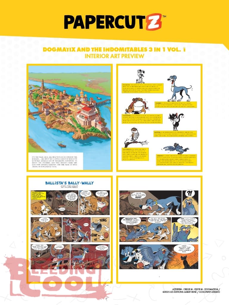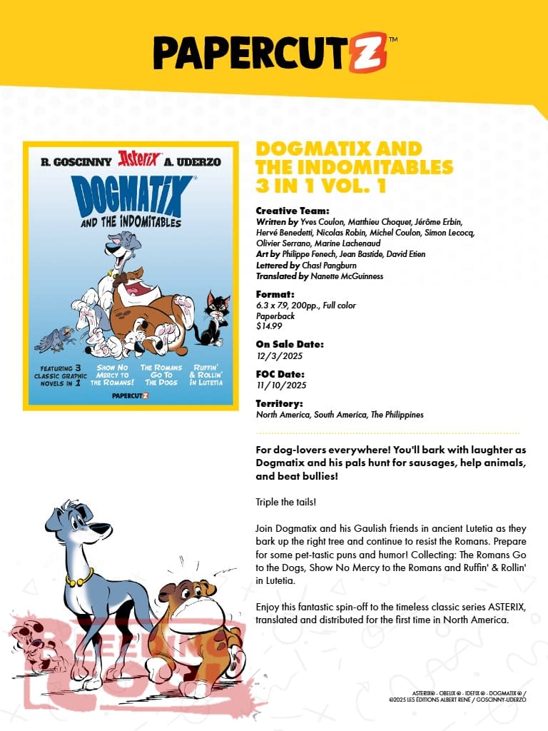 For dog-lovers everywhere! You'll bark with laughter as Dogmatix and his pals hunt for sausages, help animals, and beat bullies! Triple the tails! Join Dogmatix and his Gaulish friends in ancient Lutetia as they bark up the right tree and continue to resist the Romans. Prepare for some pet-tastic puns and humor! Collecting: The Romans Go to the Dogs, Show No Mercy to the Romans and Ruffin' & Rollin' in Lutetia. Enjoy this fantastic spin-off to the timeless classic series ASTERIX, translated and distributed for the first time in North America.