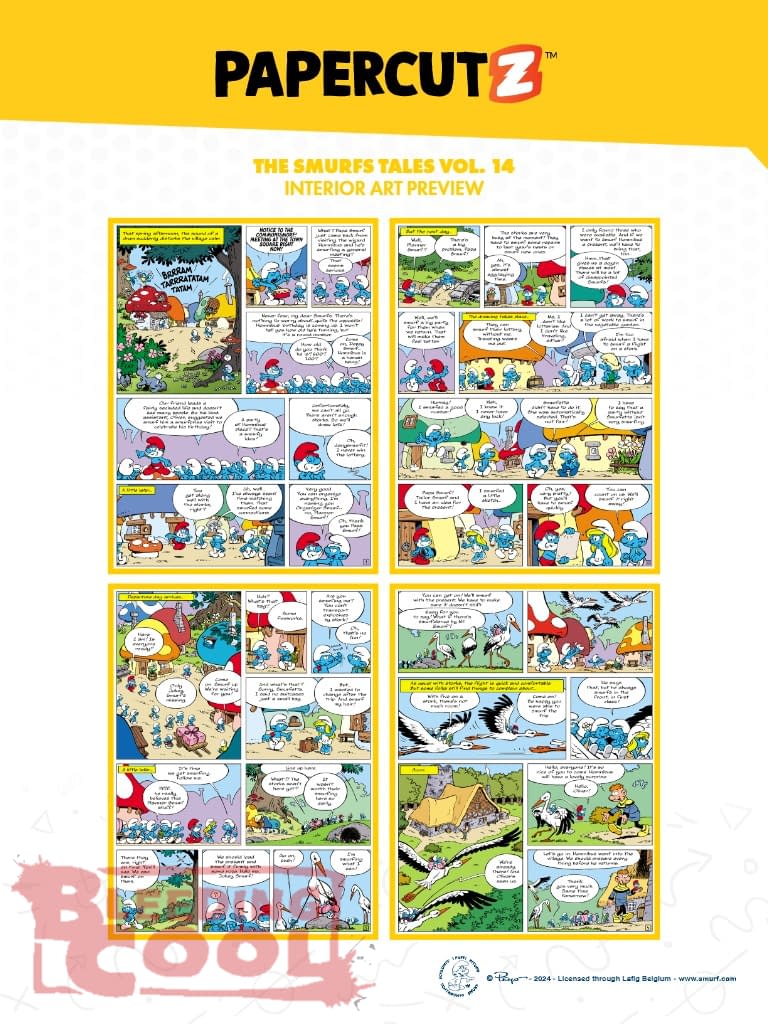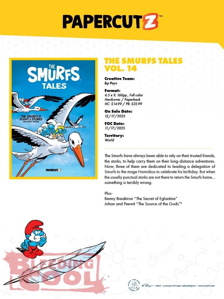 The Smurfs have always been able to rely on their trusted friends, the storks, to help carry them on their long-distance adventures. Now, three of them are dedicated to leading a delegation of Smurfs to the mage Homnibus to celebrate his birthday. But when the usually punctual storks are not there to return the Smurfs home… something is terribly wrong. Plus- Benny Breakiron "The Secret of Eglantine" Johan and Peewit "The Source of the Gods"