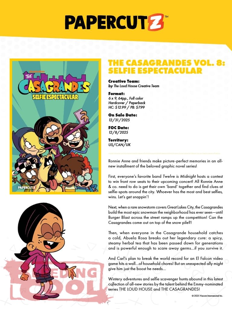 Ronnie Anne and friends make picture-perfect memories in an allnew installment of the beloved graphic novel series! First, everyone's favorite band Twelve is Midnight hosts a contest to win front row seats to their upcoming concert! All Ronnie Anne & co. need to do is get their own 'band' together and find clues at selfie-spots around the city. Whoever has the most and best selfies, wins. Let's get snappin'! Next, when a rare snowstorm covers Great Lakes City, the Casagrandes build the most epic snowman the neighborhood has ever seen—until Burger Blast across the street ramps up the competition! Can the Casagrandes come out on top of the snow pile?! Then, when everyone in the Casagrande household catches a cold, Abuela Rosa breaks out her legendary cure: a spicy, steamy herbal tea that has been passed down for generations and is powerful enough to scare away germs…if you survive it. And Carl's plan to break the world record for an El Falcon video game hits a wall…of household chores! But an unexpected ally might give him just the boost he needs… Wintery adventures and selfie scavenger hunts abound in this latest collection of all-new stories by the talent behind the Emmy-nominated series THE LOUD HOUSE and THE CASAGRANDES!