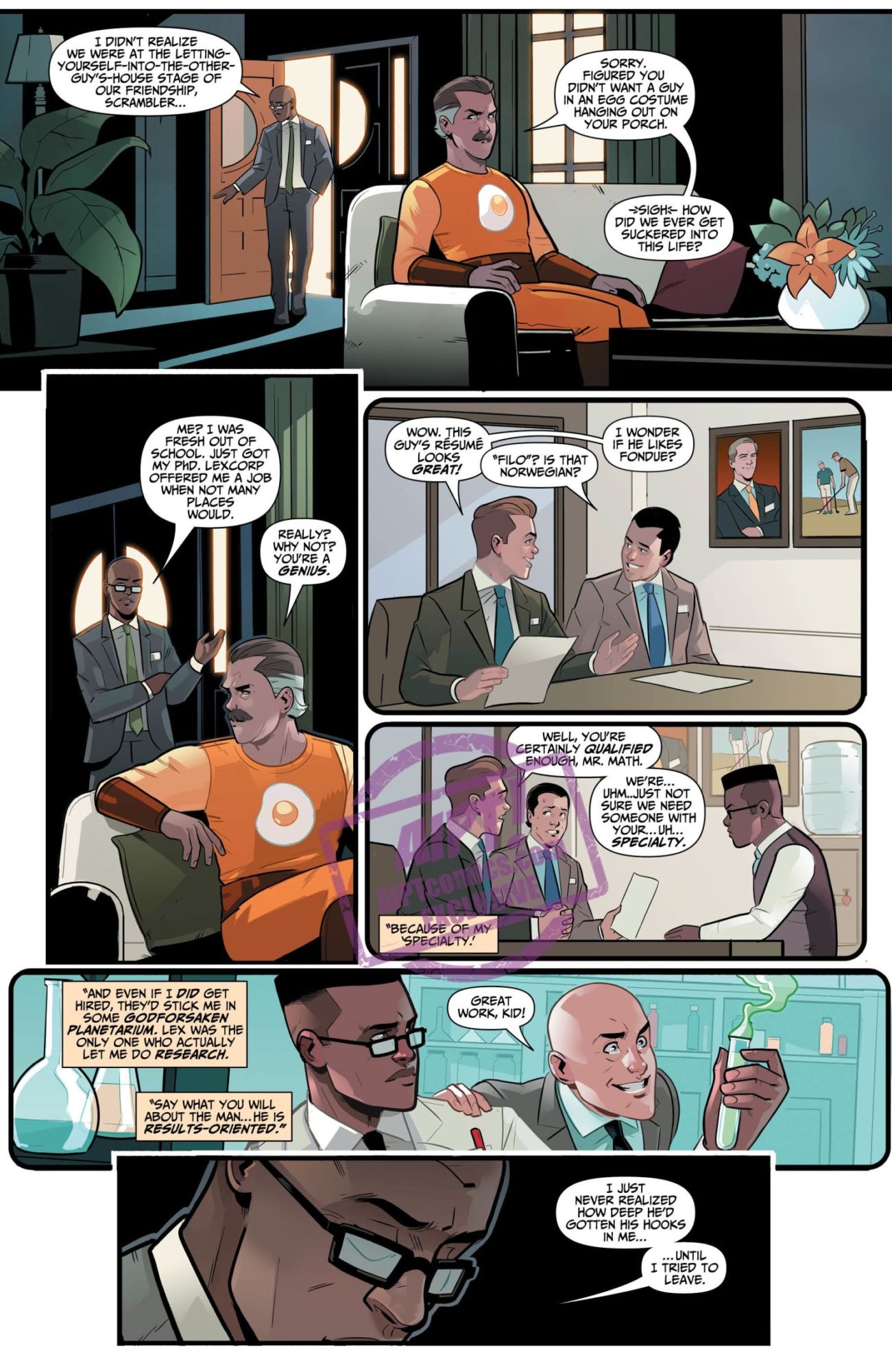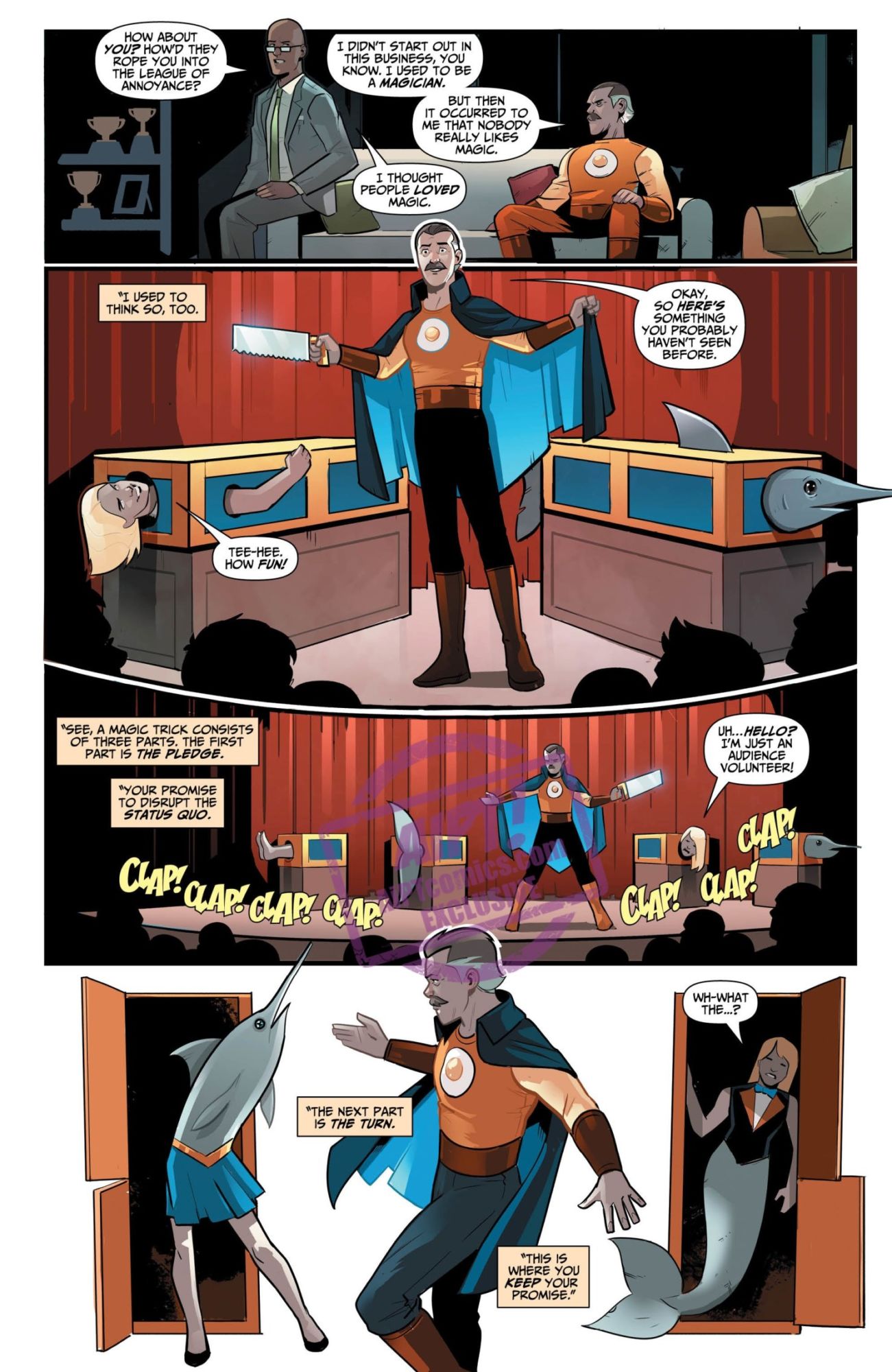 Not since 1997's Breaking the Magician's Code: Magic's Biggest Secrets Finally Revealed has a magician so flagrantly betrayed the mystery of their craft, but in this preview of next week's Wonder Twins #5, Scrambler does his best to top that scandalous production. It begins when Filo Math finds Scrambler waiting for him in his home and asks about his origins in the League of Annoyance…