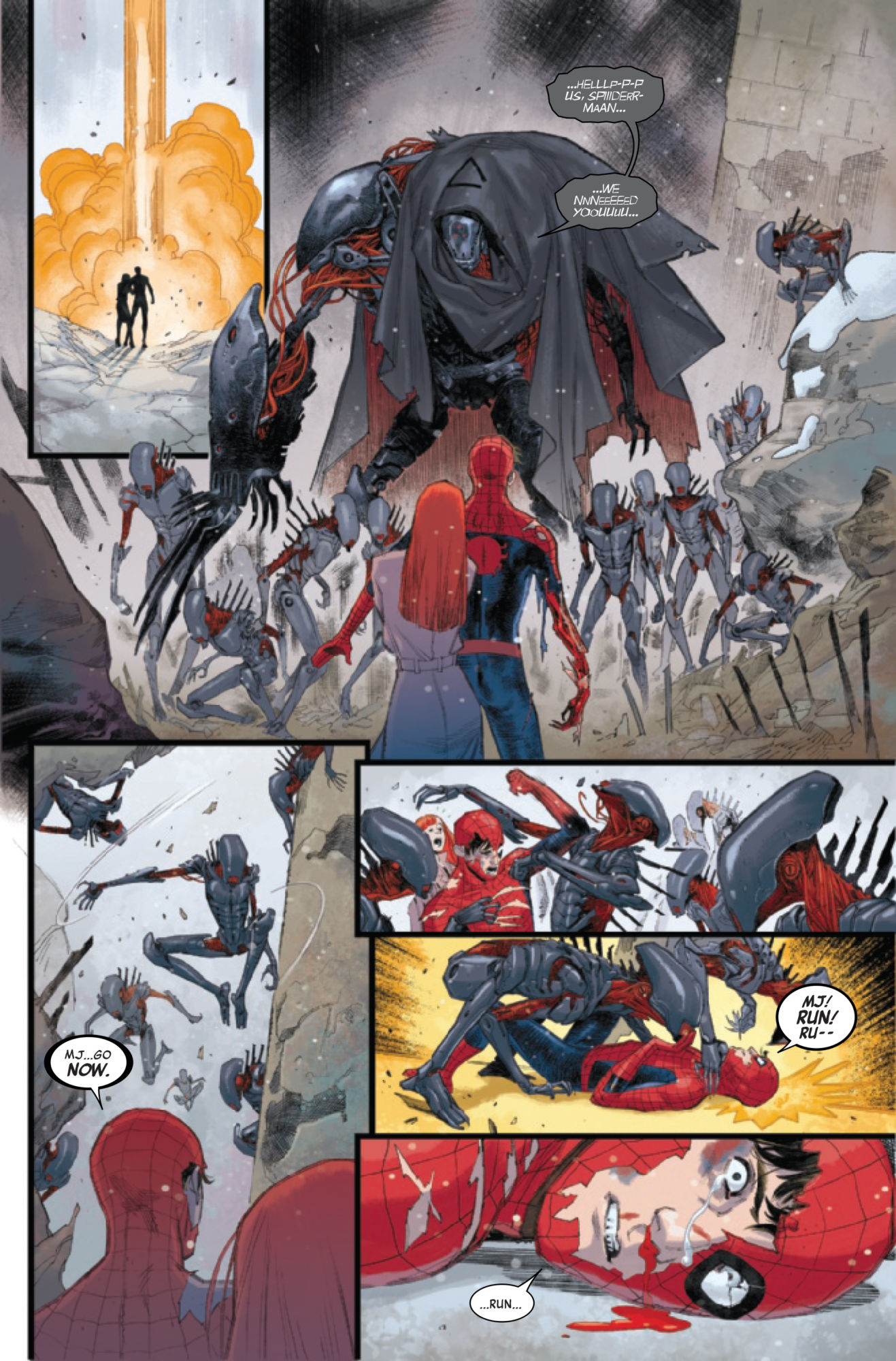 • Peter and Mary Jane have had their first run in with the new villain Cadaverous and it did not go well. What horrific impact from this horrific villain will scar them the worst?!