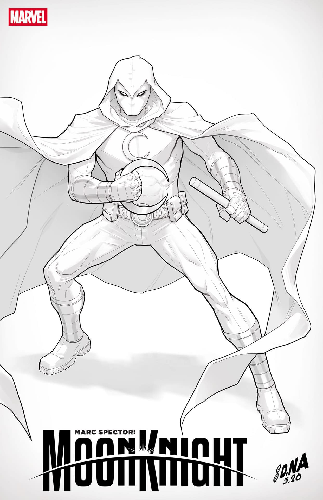 - Cover image for 75960621496900321 MARC SPECTOR: MOON KNIGHT #3 DAVID NAKAYAMA COLOR BLOCK WHITE VARIANT, by Jed MacKay & Devmalya Pramanik, in stores Wednesday, April 22, 2026 from Marvel