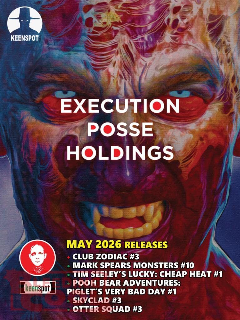 Keenspot's May 2026 solicits and solicitations have dropped, through Execution Posse Holdings and into Lunar Distribution, with more from Mark Spears' Monsters #10, a new series with the return of Tim Seeley's Lucky in Cheat Sheet with Erick Marshall, and Piglet getting a Pooh Bear one-shot…