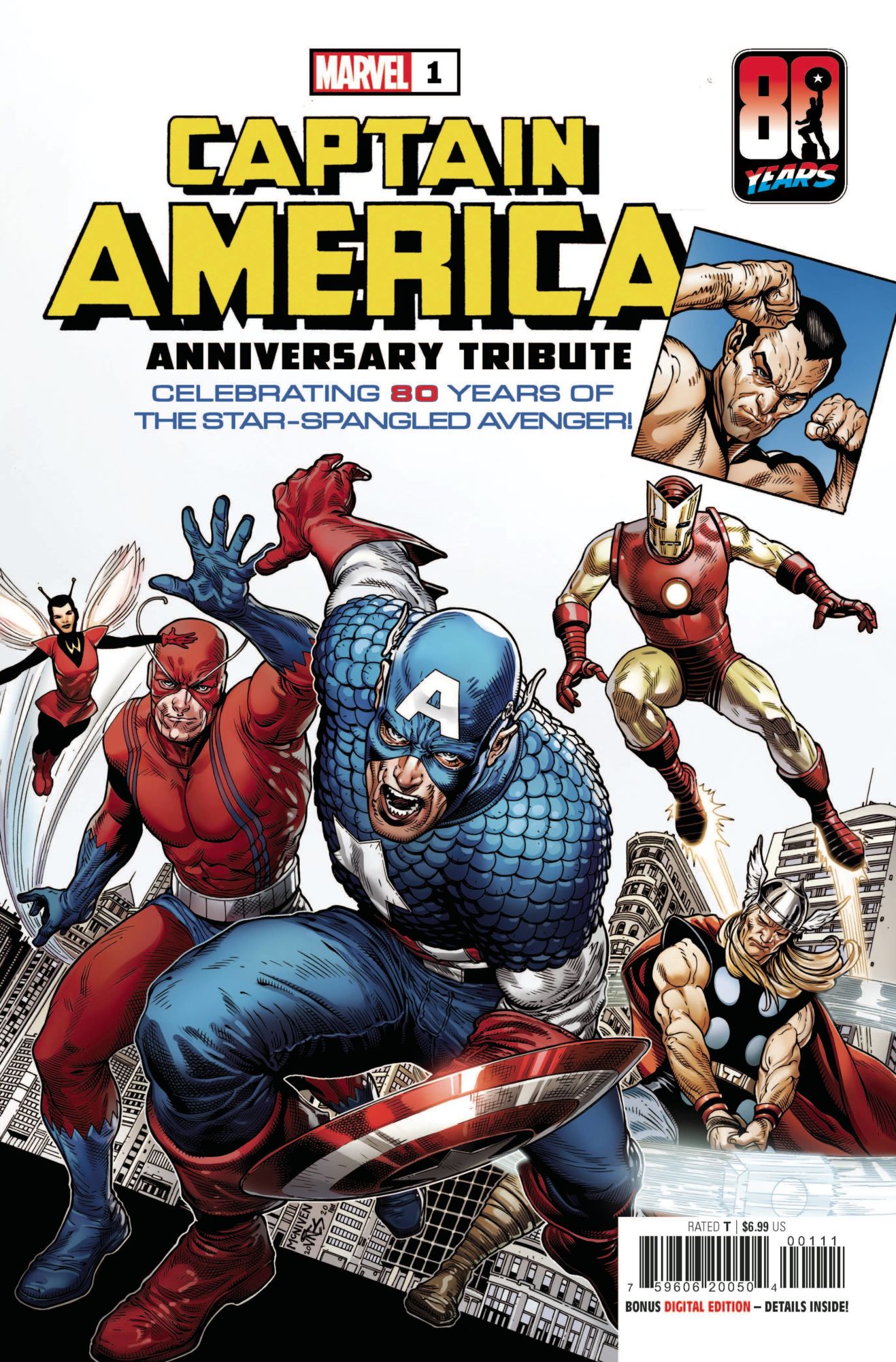 - The variant cover for Captain America Anniversary Tribute #1 by Mark Brooks from Marvel Comics.