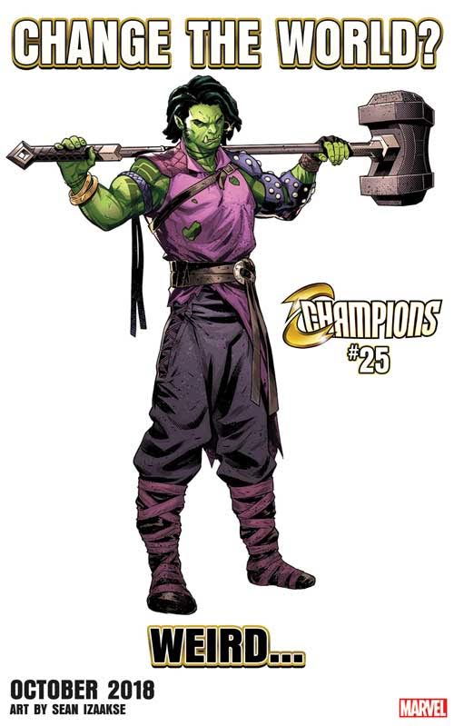 "With two of their teammates having vanished into Weirdworld, the rest of the Champions have no choice but to follow them into that ever-changing landscape," tease SVP and Executive Editor Tom Brevoort. "However, the changes this will put them through are both profound and unexpected—and will lead to something new on the horizon!"