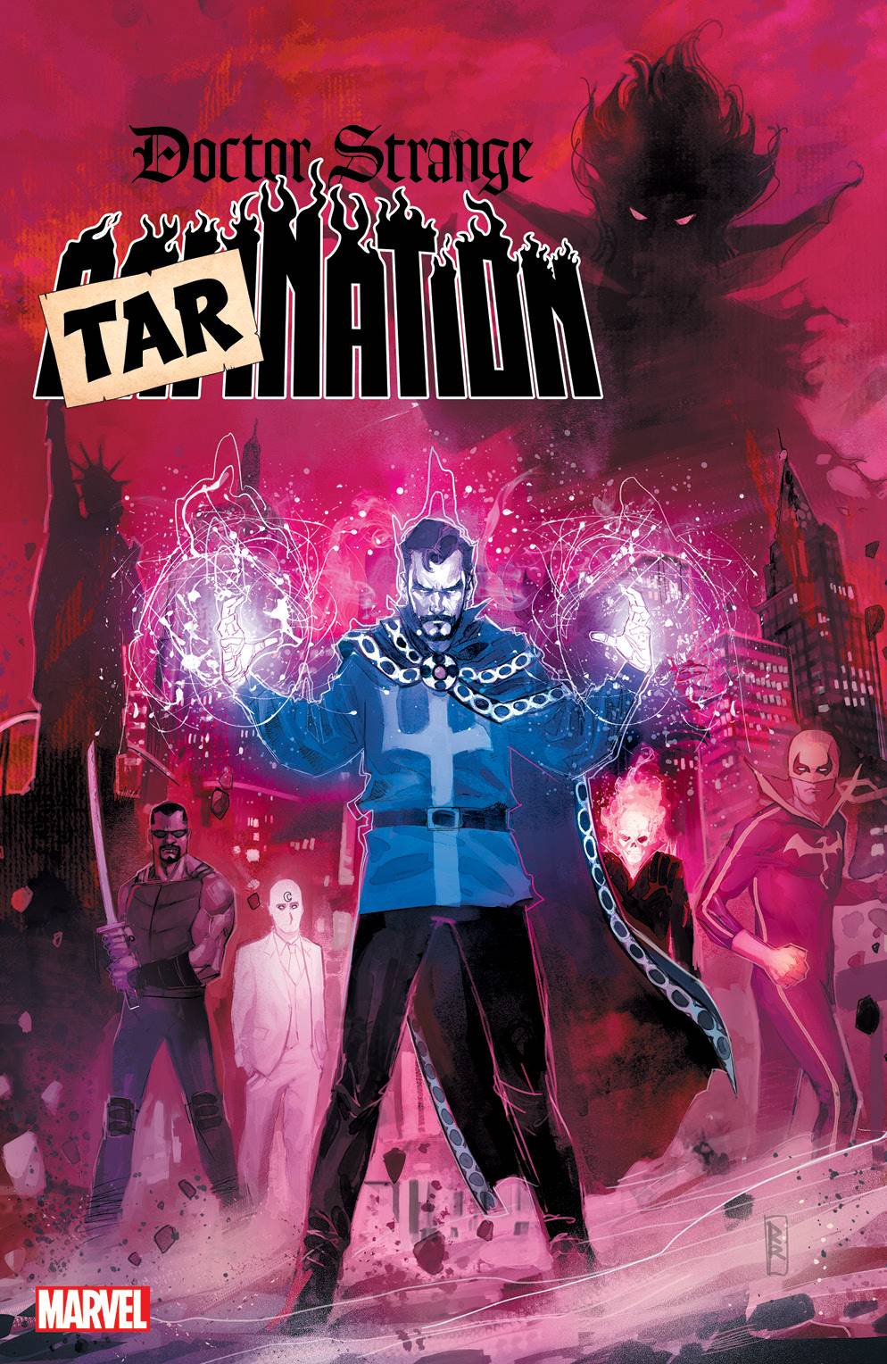 "NEW "TARNATION" VARIANT ANNOUNCED FOR DOCTOR STRANGE: DAMNATION #1! A new order all variant is now available on DOCTOR STRANGE: DAMNATION #1, with a family friendly TARNATION treatment on the cover! All interiors and content is identical to DOCTOR STRANGE: DAMNATION #1, only the cover treatment is altered. IF retailers show interest, Marvel will create a TARNATION variant for each issue of the limited series."