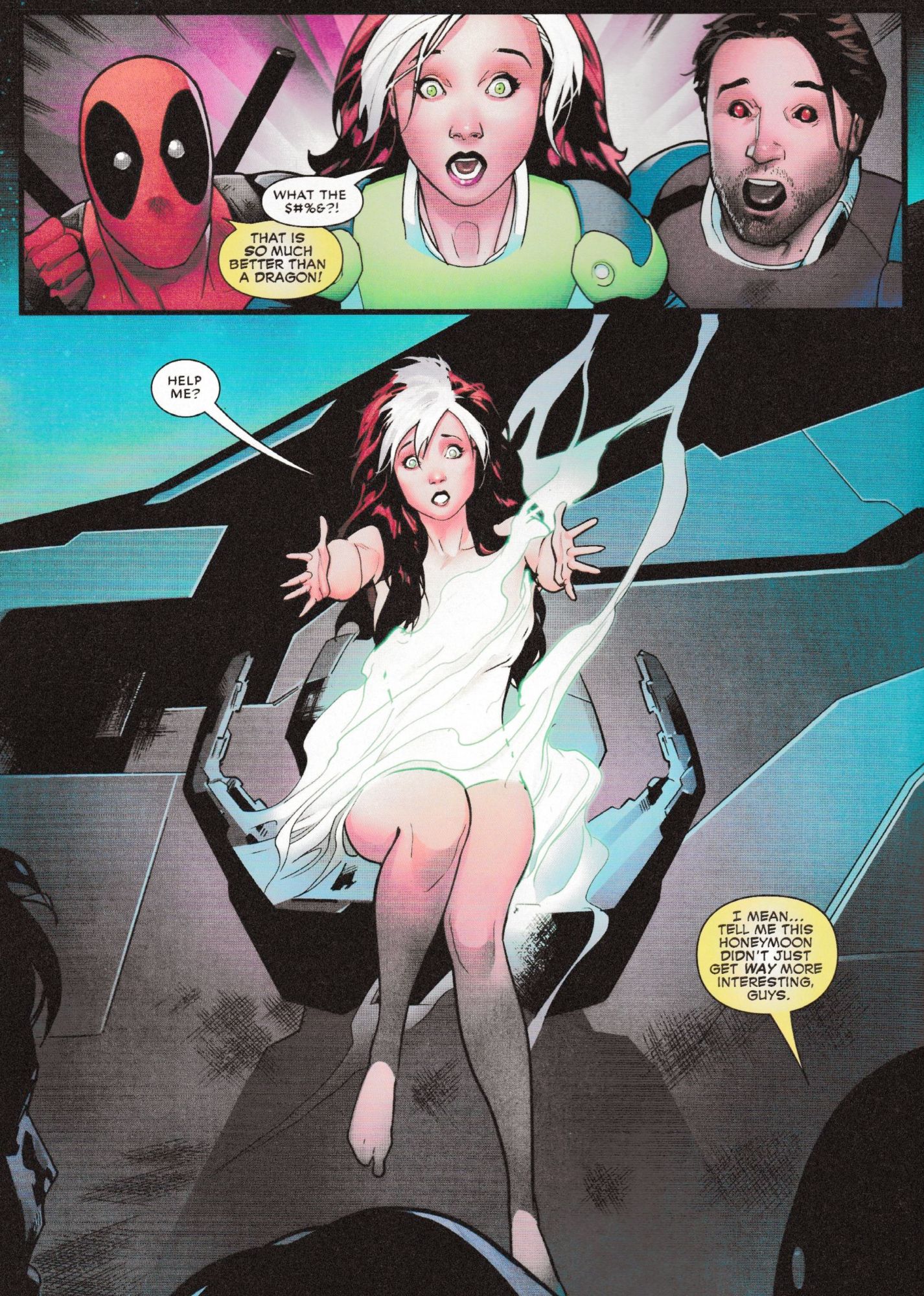 ROGUE and GAMBIT find themselves tasked with protecting a mysterious package that everyone in the galaxy suddenly seems to want. Why does everyone want this thing and WHAT exactly is it? Perhaps more importantly, is there anything worse than Deadpool crashing your honeymoon? Yes! There is something worse! TECHNET crashing too! Man your battle stations, people — it's absolute honeymoon mayhem! Rated T+ In Shops: Aug 22, 2018
