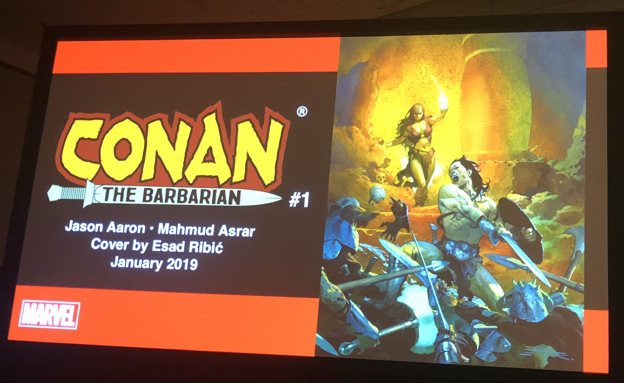 Conan The Barbarian #1 by Jason Aaron and Mahmud Asrar, cover by Esad Ribic, variants by Asrar and Greg Hildebrandt