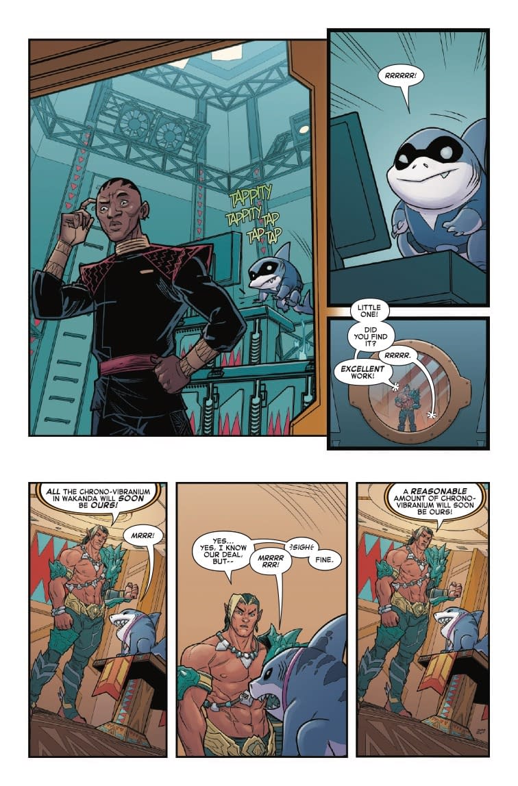 - T'Challa and Shuri must catch the fishy thieves red-handed before Namor succeeds in stealing Wakanda's time-manipulating resource