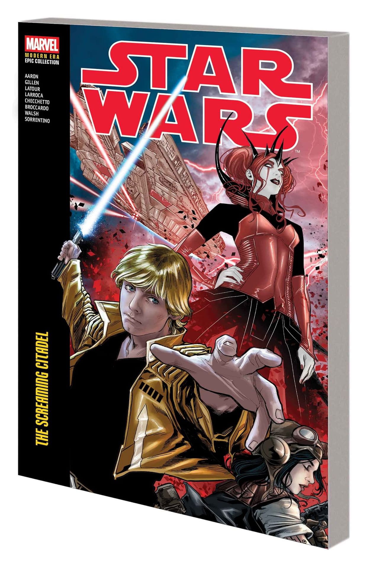 A rebel pilot and a rogue archaeologist delve side by side into the galaxy's darkest shadows when Luke Skywalker reluctantly joins forces with Doctor Aphra! But will Luke find what he's looking for in the heart of the infamous Screaming Citadel? Can he trust Aphra? Or will they both wind up victims of the Citadel's queen? Plus: Luke finally gets the alone time he's been after with Princess Leia – unfortunately, it comes while they're stranded on a desert island! Meanwhile, Han and Chewie go back to smuggling…for a Hutt?! But the Empire has held C-3PO captive for far too long – and now his faithful friend, R2-D2, is riding to the rescue! And the Death Star left Jedha in ruins when it annihilated the Holy City. Now, as Queen Trios' forces move in to strip what's left, the rebels struggle to preserve the planet for its survivors! Collecting STAR WARS (2015) #31-43 and ANNUAL (2015) #3, STAR WARS: THE SCREAMING CITADEL (2017) and STAR WARS: DOCTOR APHRA (2016) #7-8.