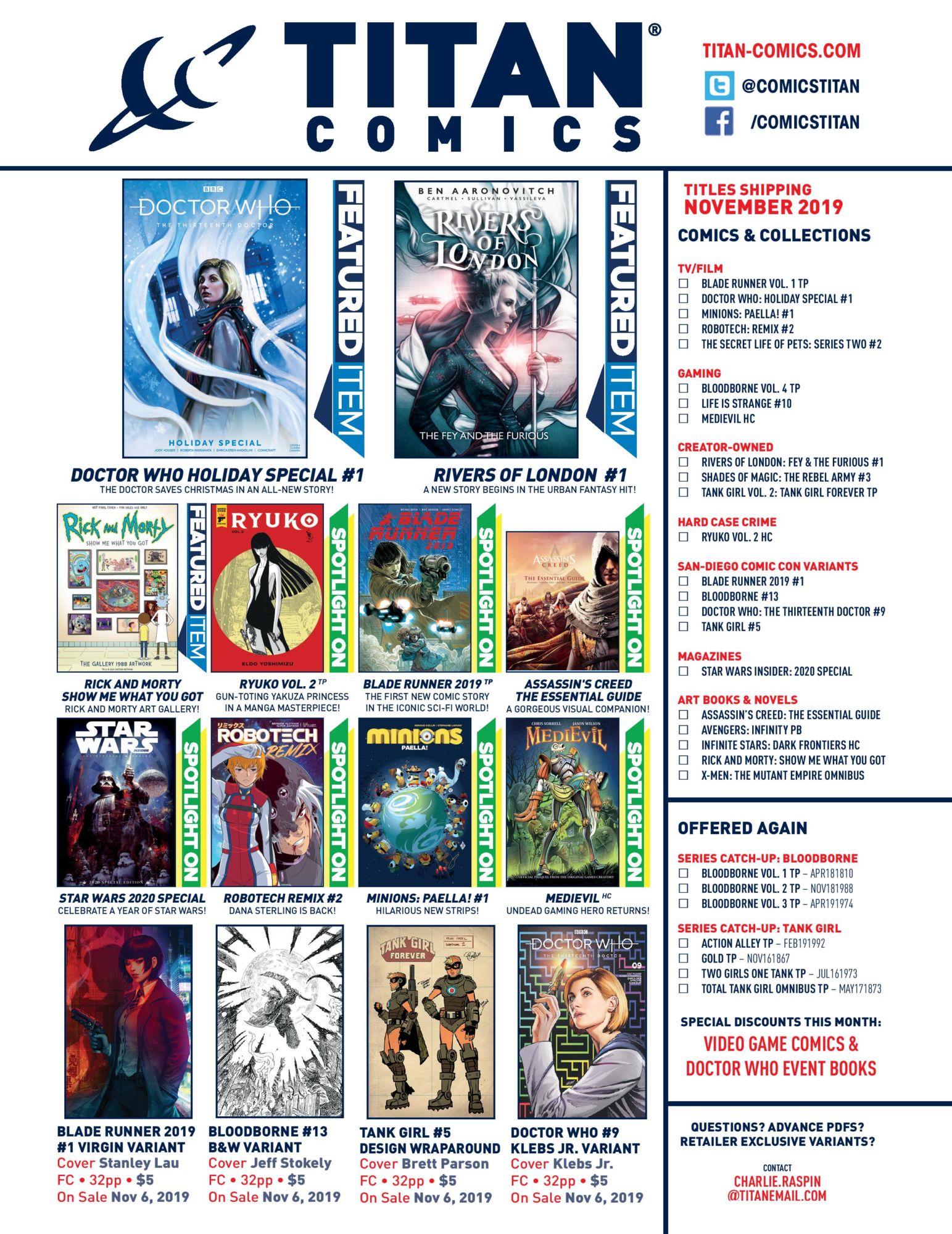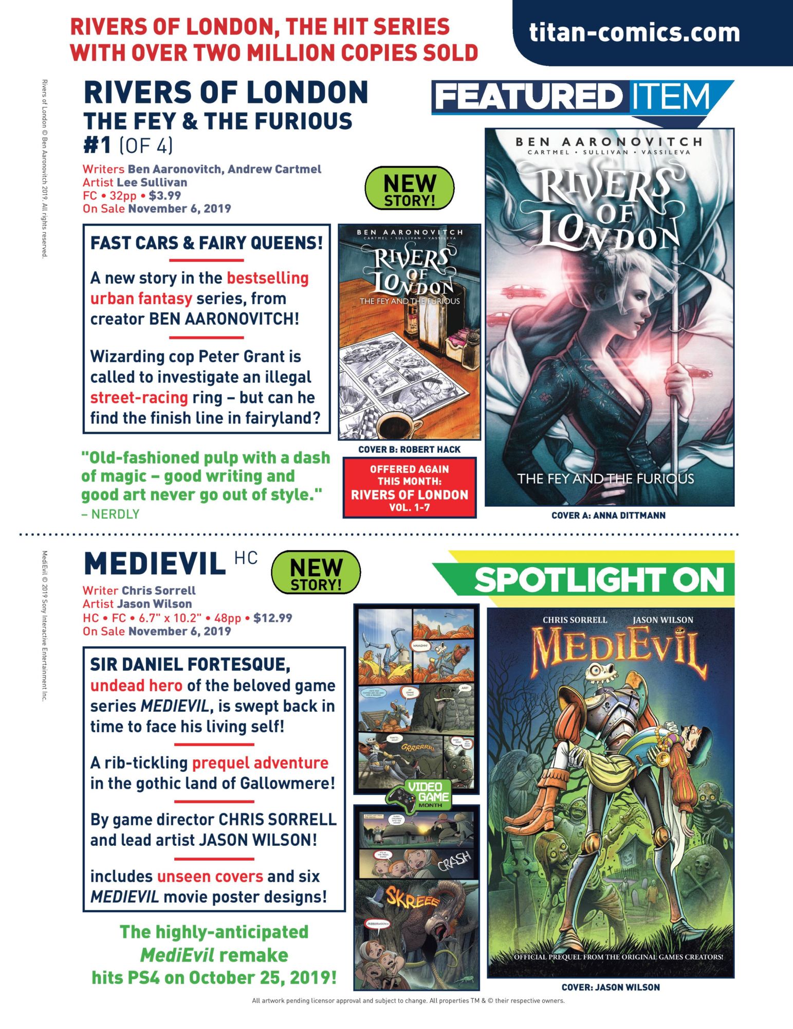 Here's a look at Titan Comics solicitations for November 2019, with a Doctor Who Christmas Special, a new Rivers Of London series, a comic book spinoff of MediEvil, and a new Minions comic book too…