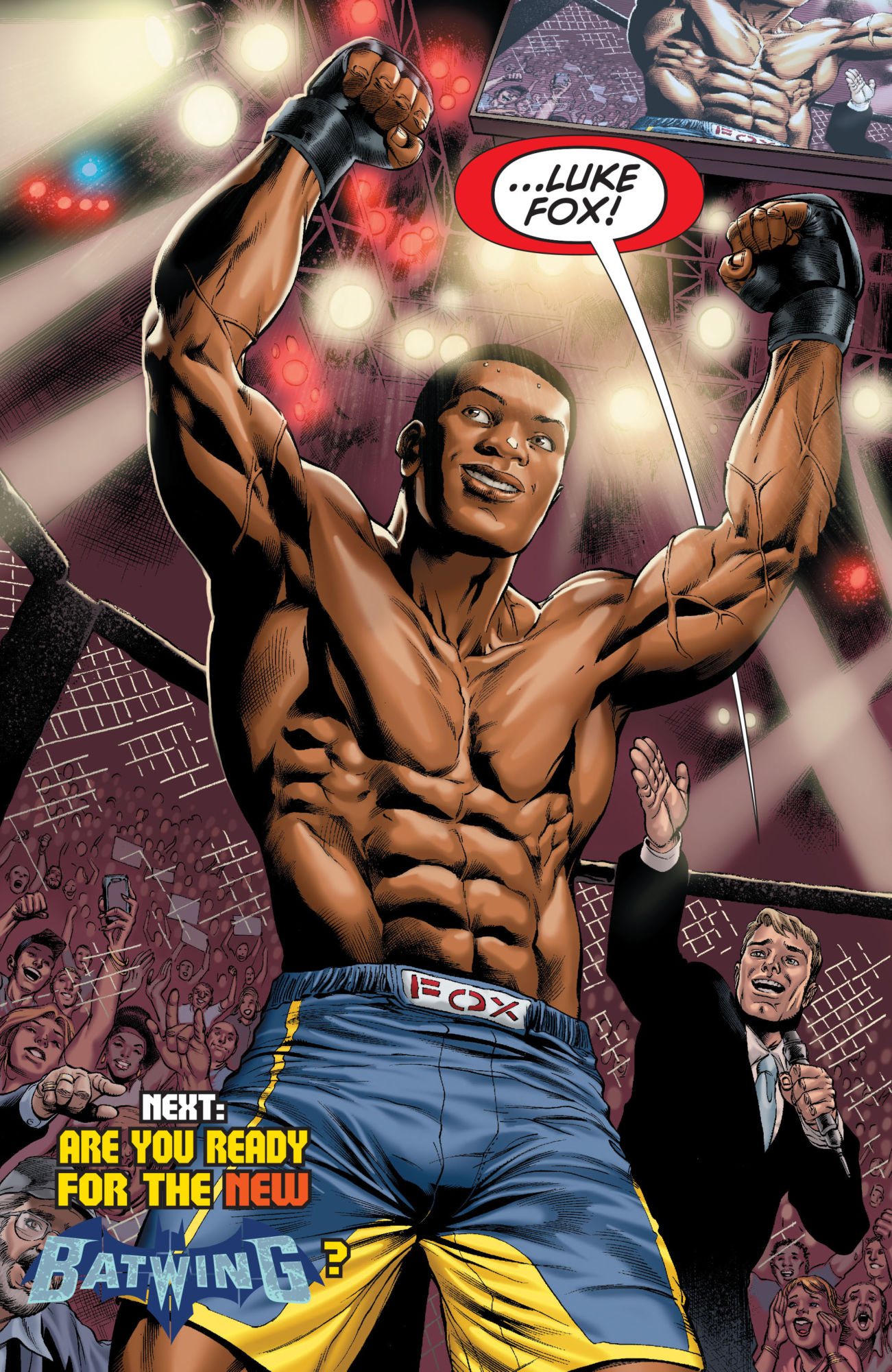 Created by Justin Gray, Jimmy Palmiotti and Eduardo Pansica, Lucas "Luke" Fox was born into a family of wealth and prestige, his father Lucius Fox was president and CEO of Wayne Enterprises and a genius scientist and inventor. Lucas had inherited his father's natural intellect, graduated MIT with double degrees in engineering and business management and soon had hundreds of job offers from around the world even one from his father's company of Wayne Enterprises. However, Lucas had other aspirations seeking to gain the attention of the Batman. He took to MMA and cage fighting, hoping the Batman would notice his skills and intellect and recruit him into the new fledgling Batman Incorporated, which gained him the scorn of his father, who was distraught that his son was ignoring so many prospects to go fight in "barbaric cage-matches".