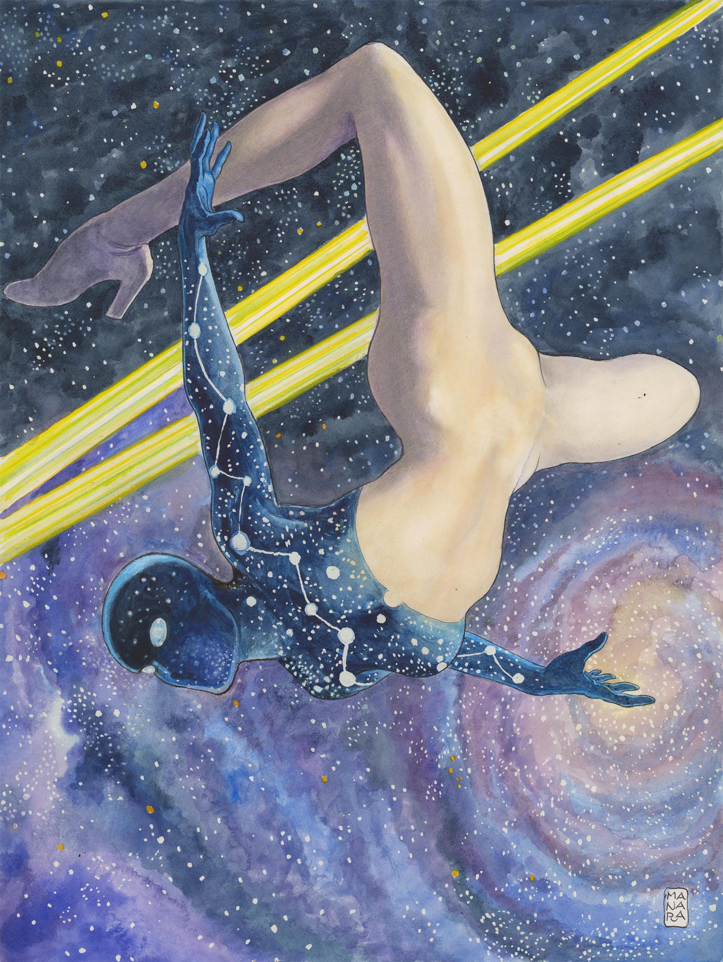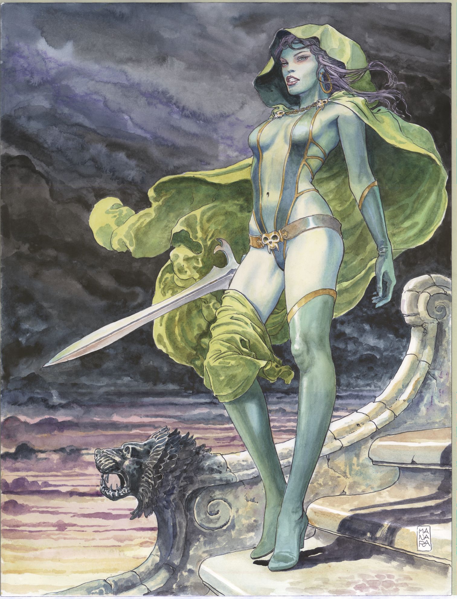 The gallery quotes Manara saying "Every cartoonist should do superheroes at least once in his life… There is a realism and a passion among comic authors who give the impression that they believe in their drawings. Superheroes is a modern mythology, Olympus with its deities. These are fantasies that we really believed in Greece. "