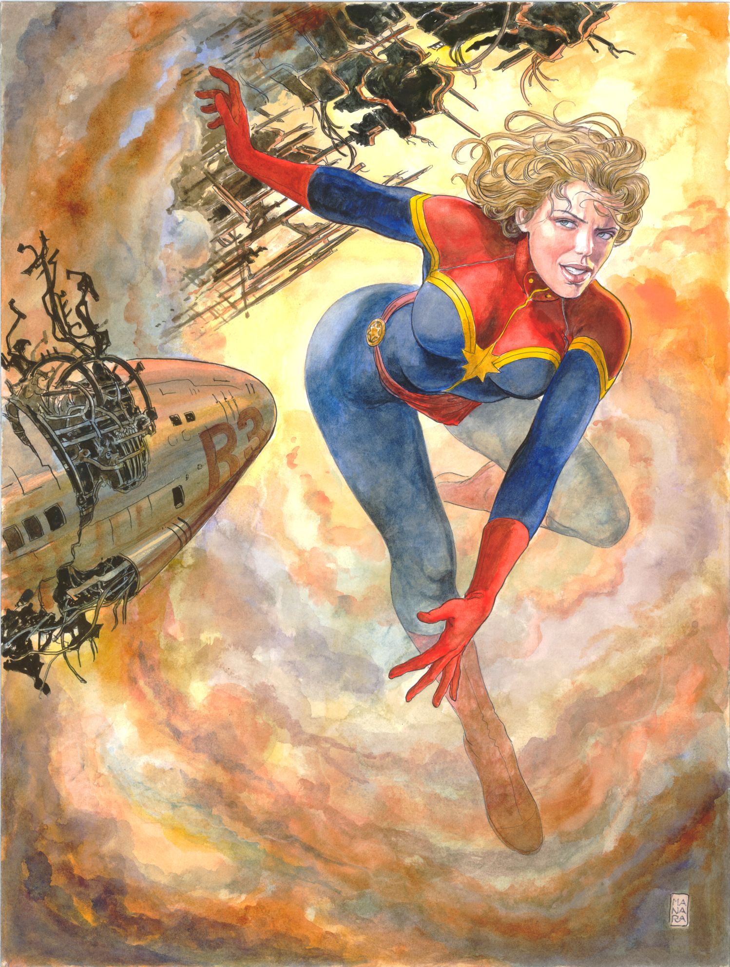 UPDATE: Or at least that's how the gallery lists her. She's Smasher from Jonathan Hickman's Avengers. From a 1:50 cover for Avengers World. Still, it helps them sell the original art for 30,000 Euros.