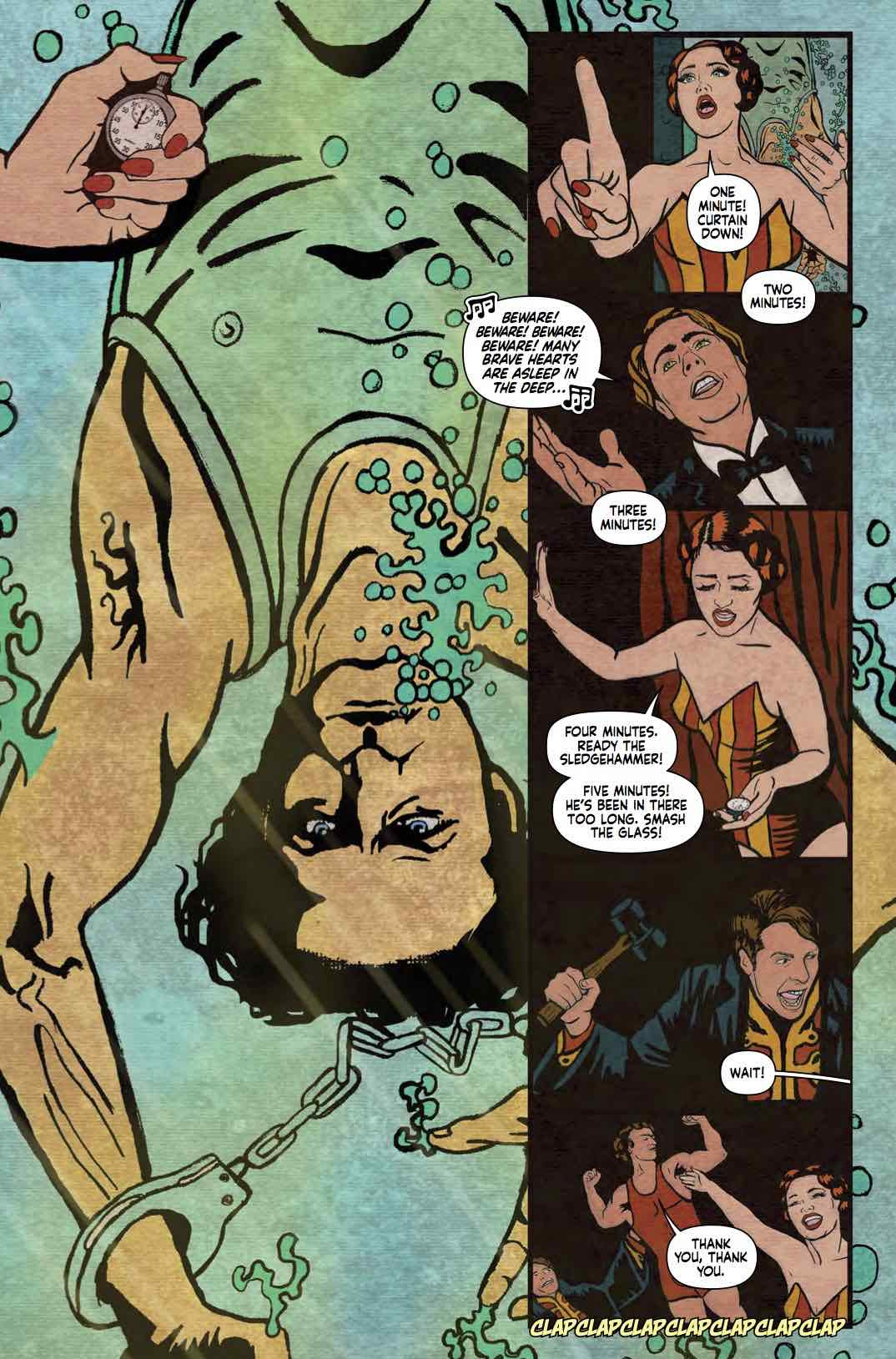 Produced, written and directed by von Buhler, the stage show stars burlesque performer (and model for Minky Woodcock in the comic) Pearls Daily, with Vincent Cinque as Harry Houdini and co-director, and Robyn Adele Anderson as Houdini's wife, Bess. Audience members will get to experience séances, sip bootleg absinthe, and witness Houdini's infamous Water Torture Chamber escape while exploring three floors of a restored 1920s speakeasy.