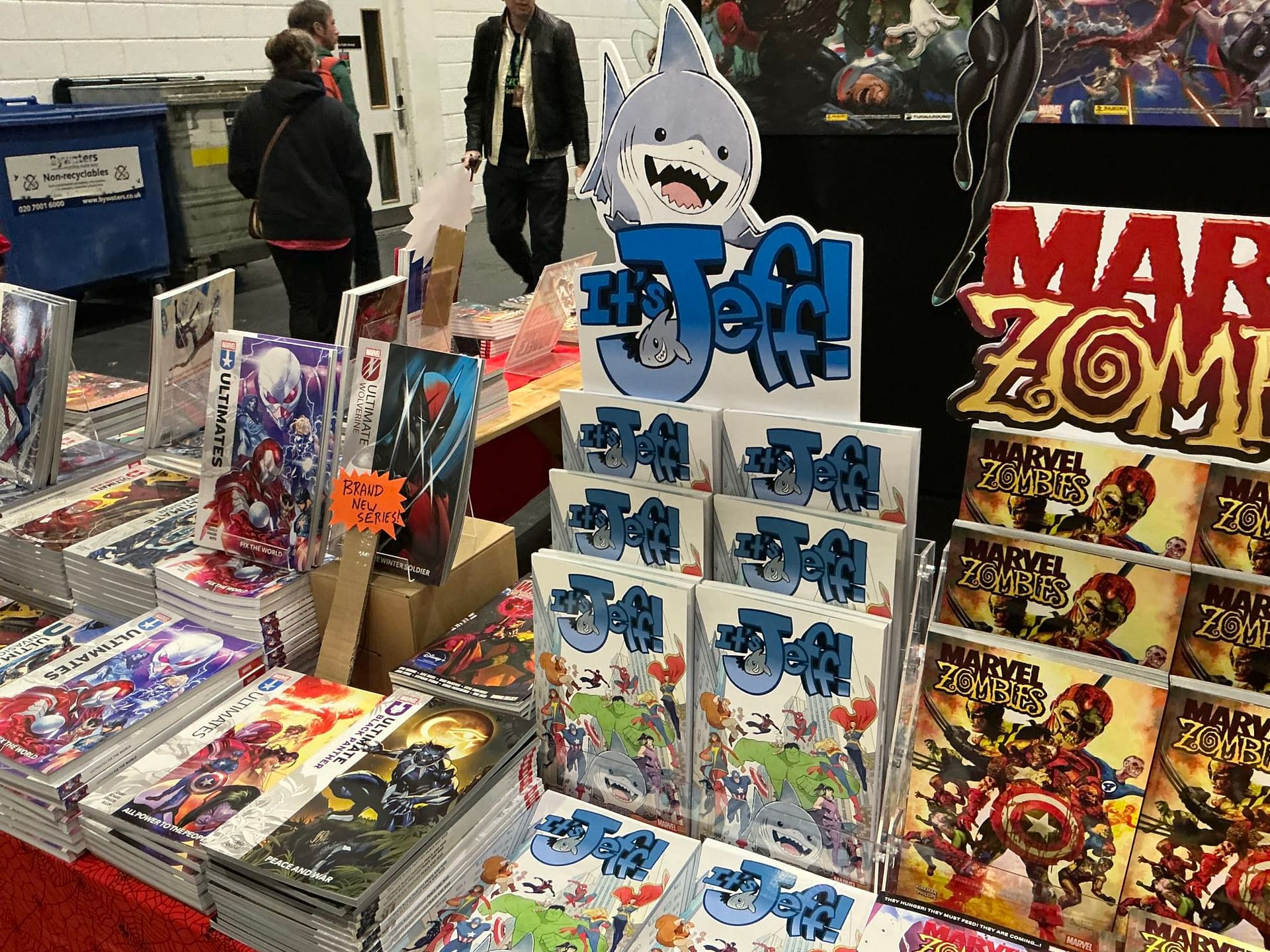 Panini, who has the Marvel UK license, was selling a lot of Jeff the Shark. A little card POS standee helped, but especially with the Marvel Rivals appeal of EGX being part of MCM, it sold very well, as did Pat Mills' Requiem.
